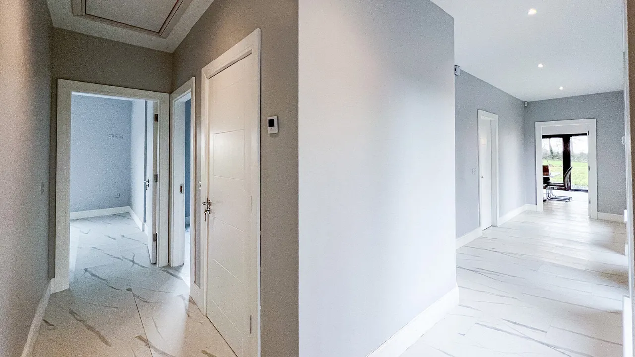 The property was built in 2021 and is finished to a high specification and standard with good attention to detail. The architecture is timeless, complementing the peaceful setting and possesses flexibility of internal arrangement, clean lines, airiness and all the creature comforts of a modern and practical family home.