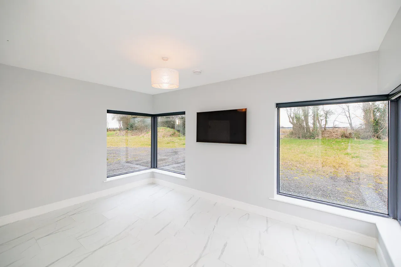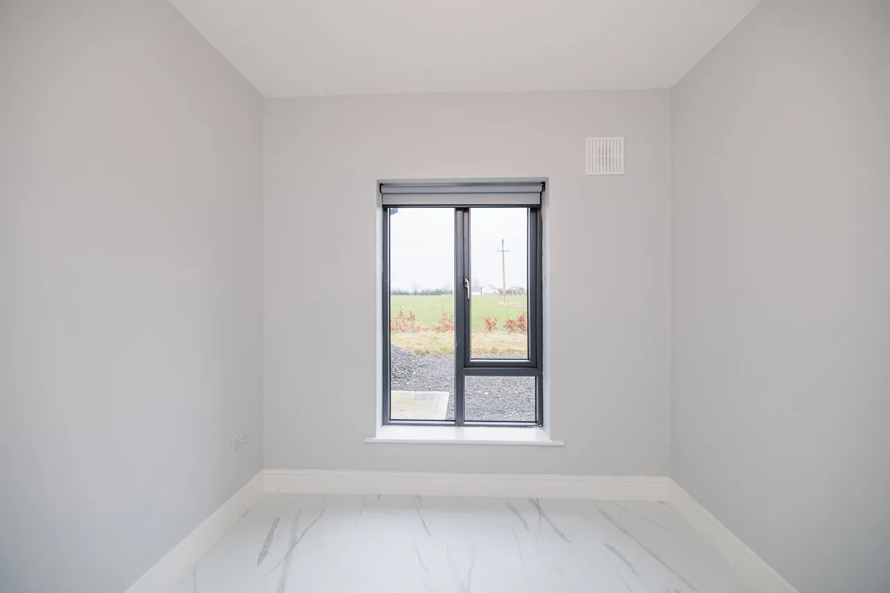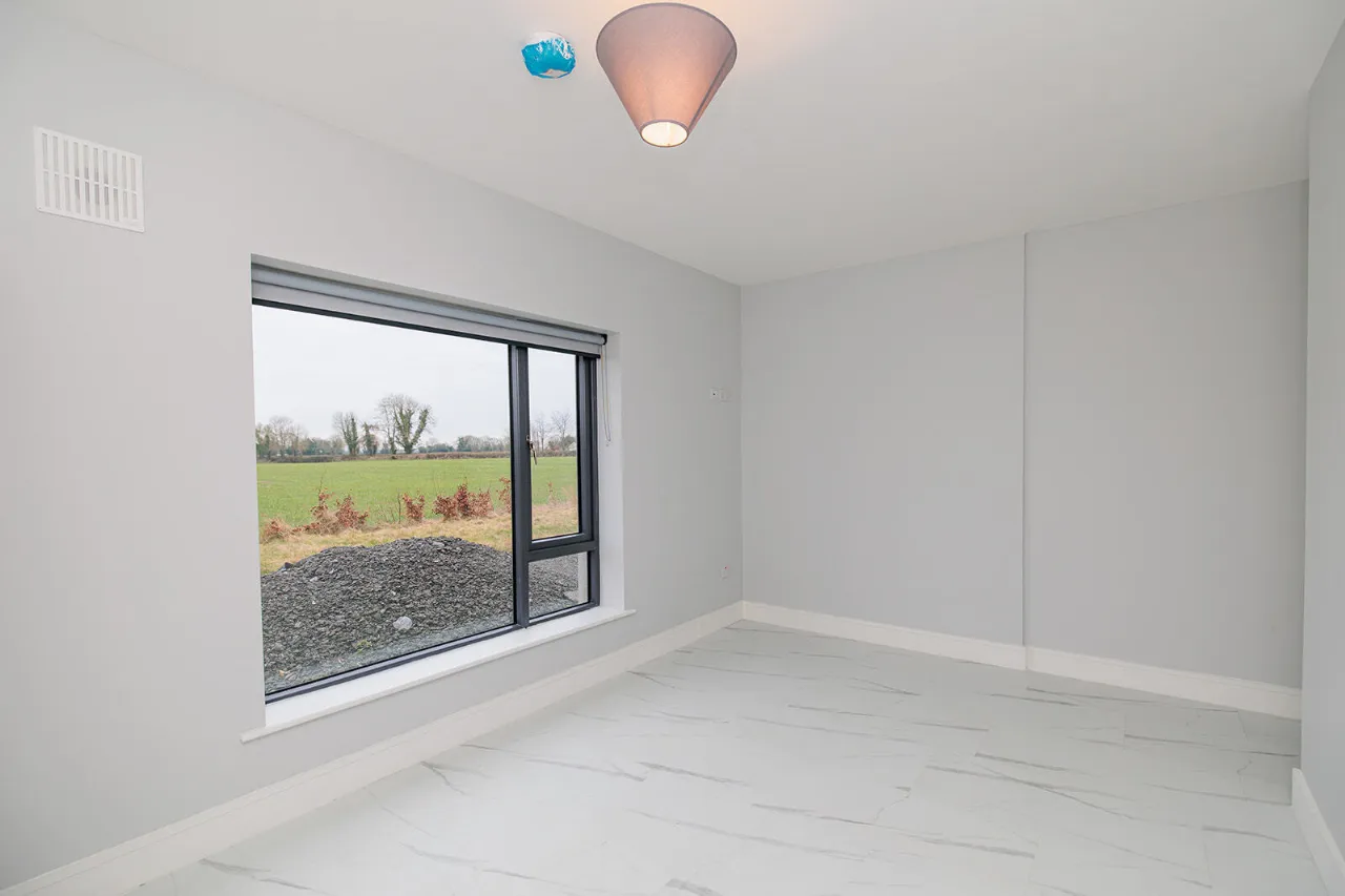Bedroom Two 4.81m x 3.05m + 1.08m x 0.78m A spacious double bedroom positioned to the rear of the property. Large picture wondow overlooking the rear garden and adjoining lands.