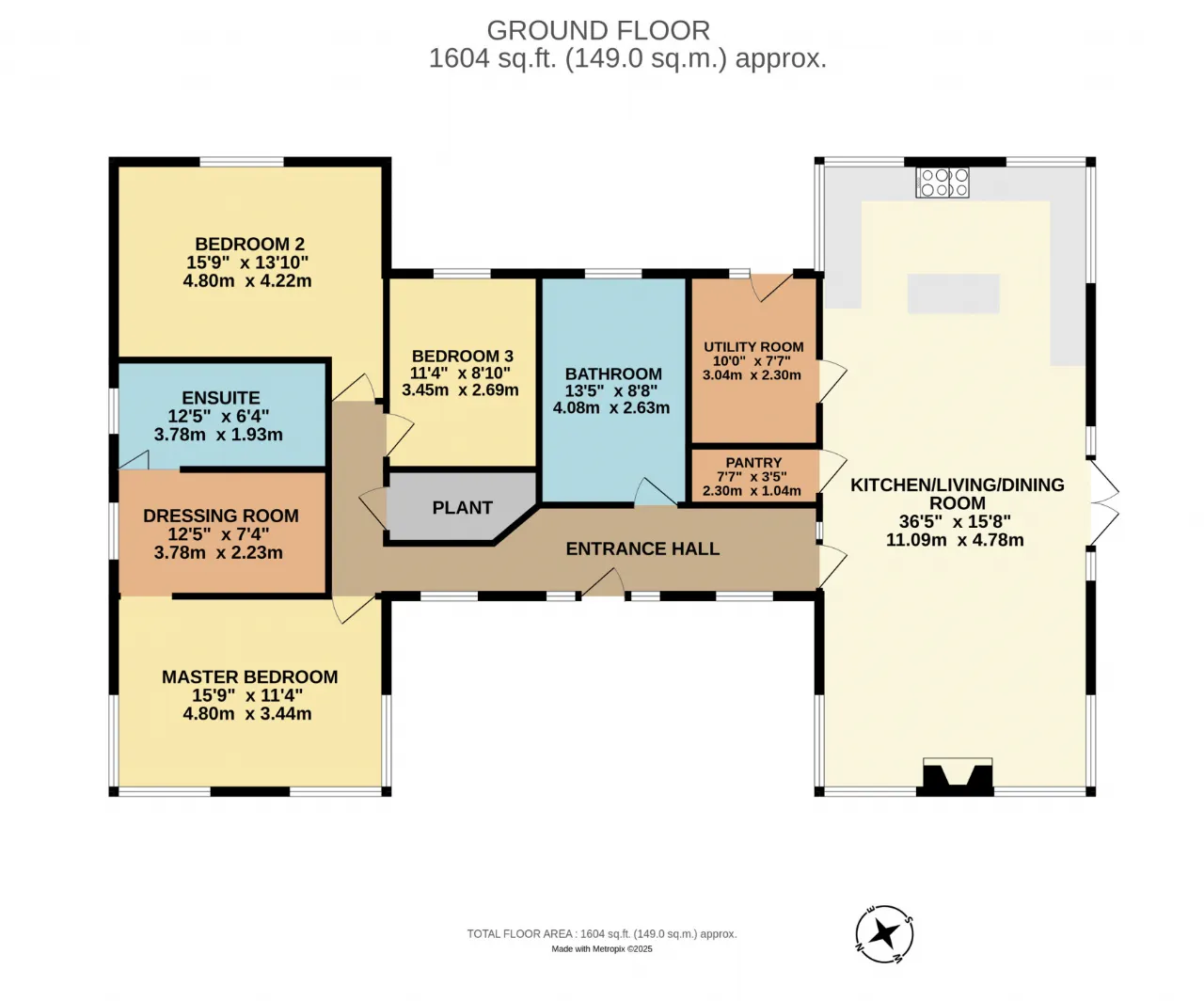 Master Bedroom 4.80m x 3.29m A fine-sized master bedroom to the front with two large corner picture windows which are fitted with electric blinds. Open plan access through to a dressing room.