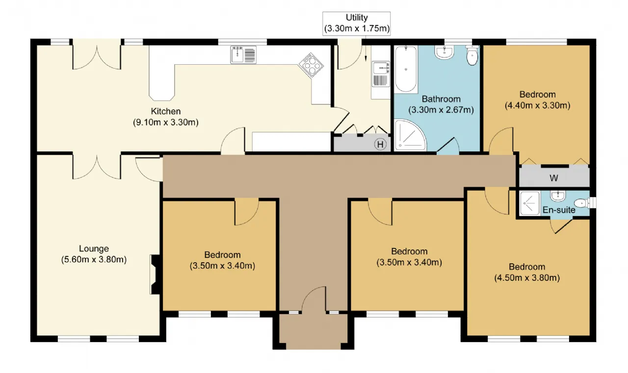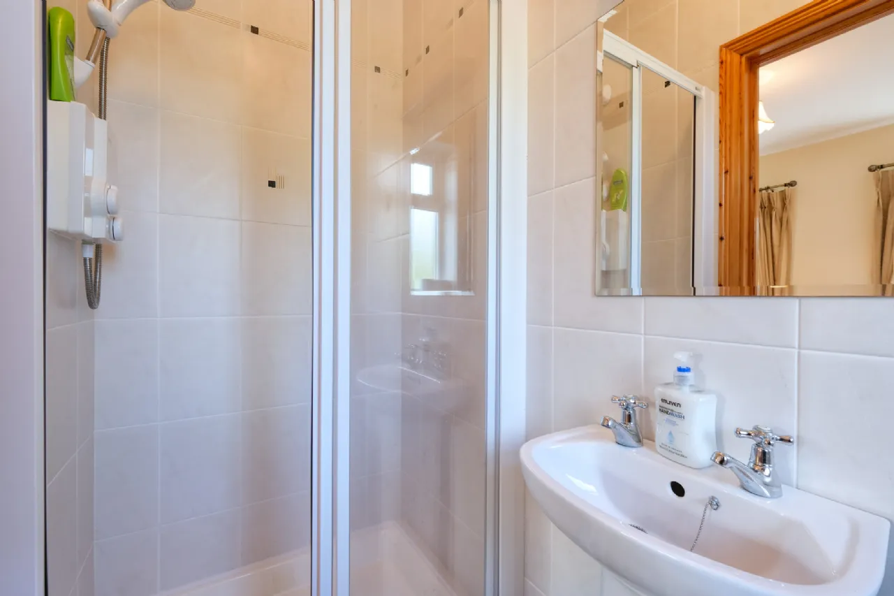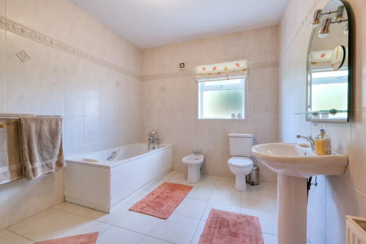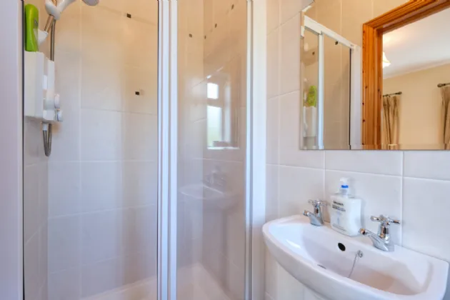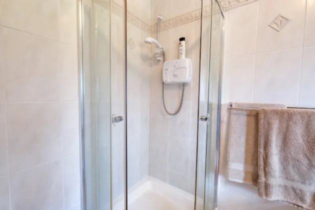 All four bedrooms are double sized. The main bedroom has an ensuite shower room . There is also a fully tiled family bathroom with a separate shower serving the other three bedrooms.