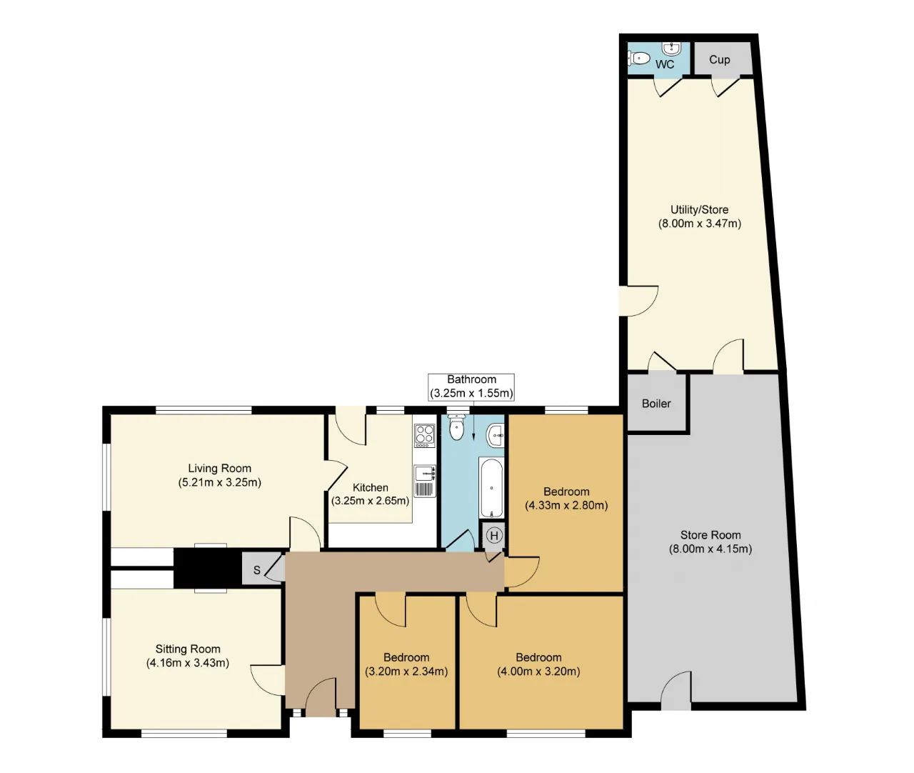 Attached to the house is a large front store room that connects to the rear with another large utility store. This is plumbed for a washing machine and there is also a WC.