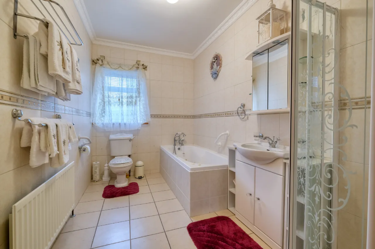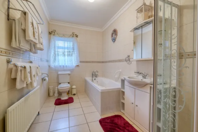 There are three spacious double sized bedrooms all with built in wardrobes. The main bedroom has a walk in wardrobe and a fully tiled ensuite shower room. There is a large fully tiled family bathroom with Jacussi bath and a separate shower. There is also a attic storage space with fold down attic stairs.
