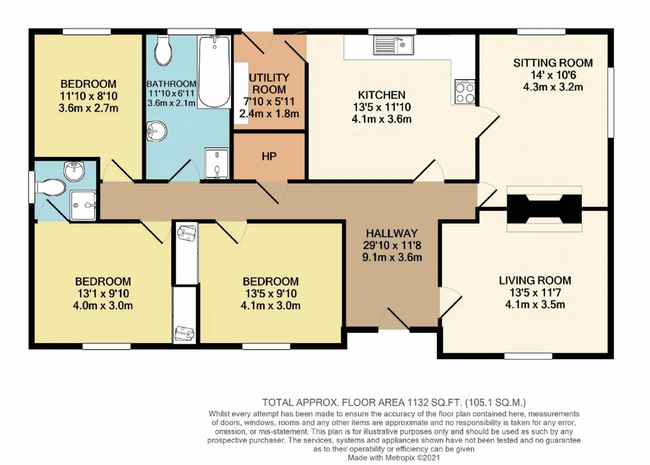 Kitchen 3.6m x 4.1m With tiled floor and solid fitted kitchen with tile splash back and intergrated oven.