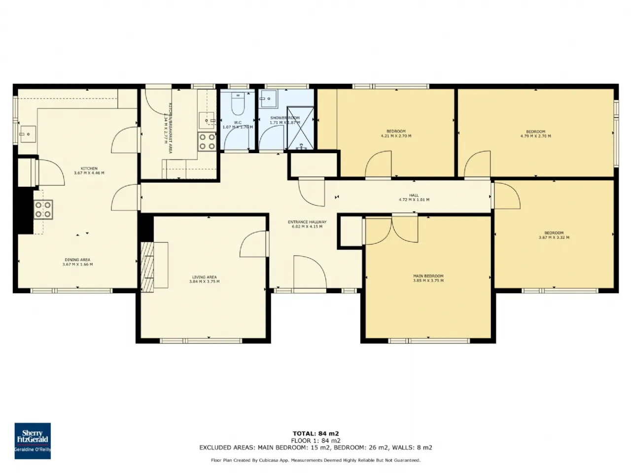 Shower Room 1.71m x 1.87m Tiled floor, Shower, WHB