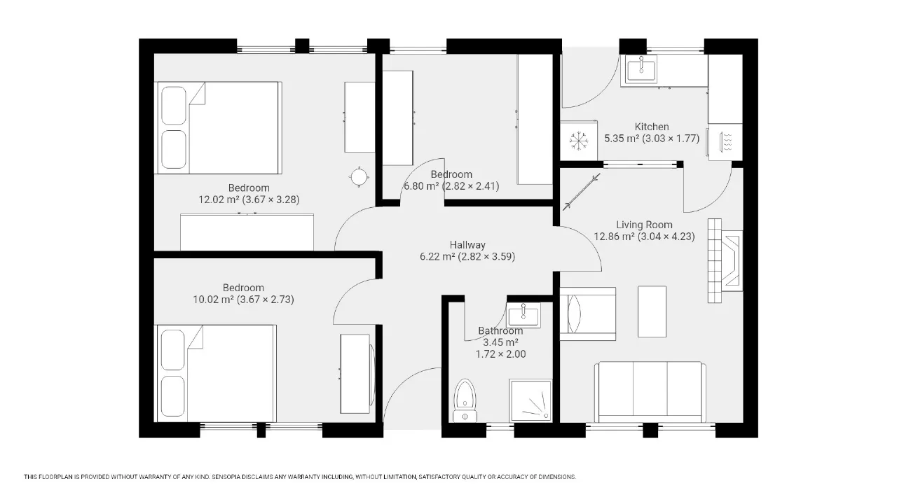The accommodation is well laid out and comprises an entrance hallway, sitting room, kitchen, three bedrooms, and a family bathroom.