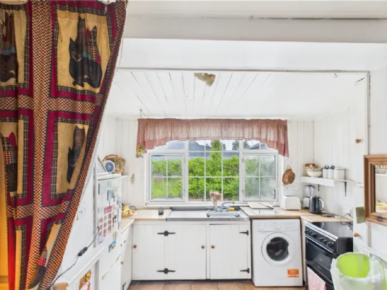 Kitchen/Dining Room 3.09m x 6.10m with fitted kitchen, tiled floor and hot press