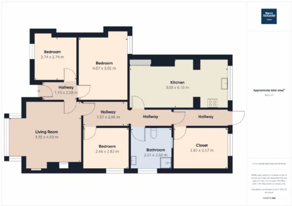 Shower Room 2.51m x 2.50m with pumped electric shower, wc, handbasin and tiled floor
