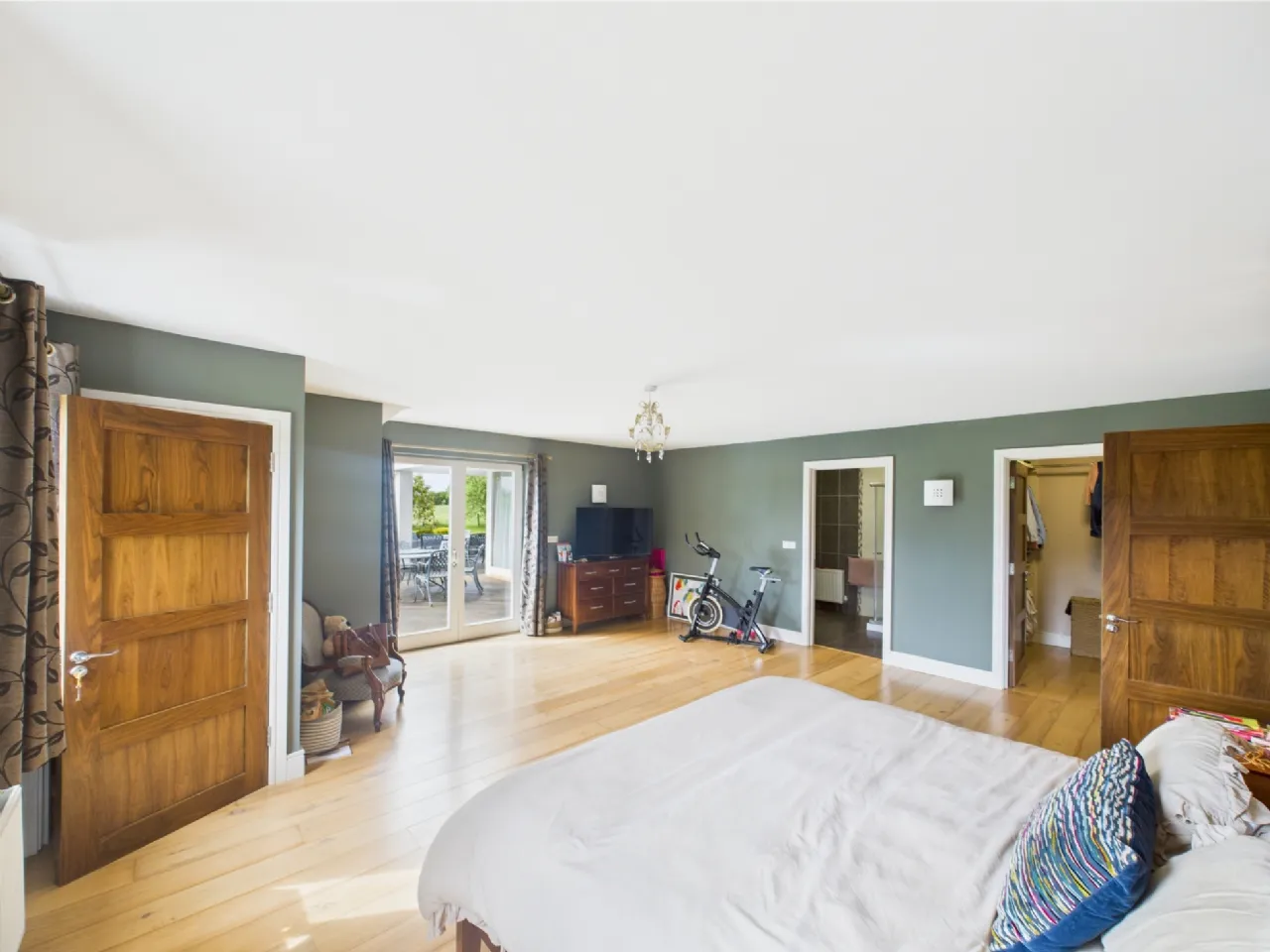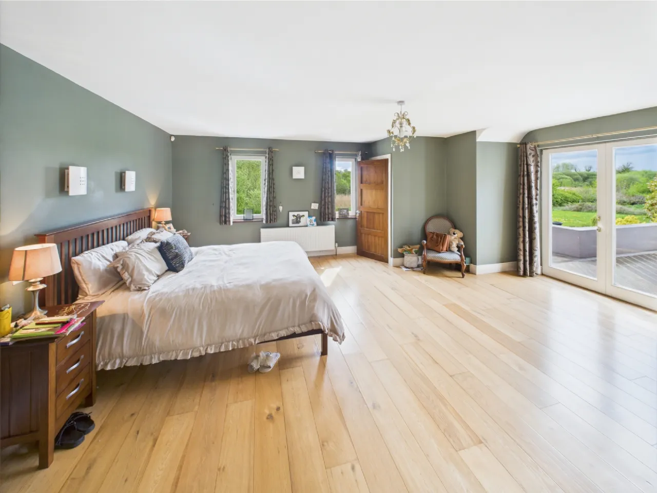 Bedroom One 6.0m x 5.9m with oak floors and French doors