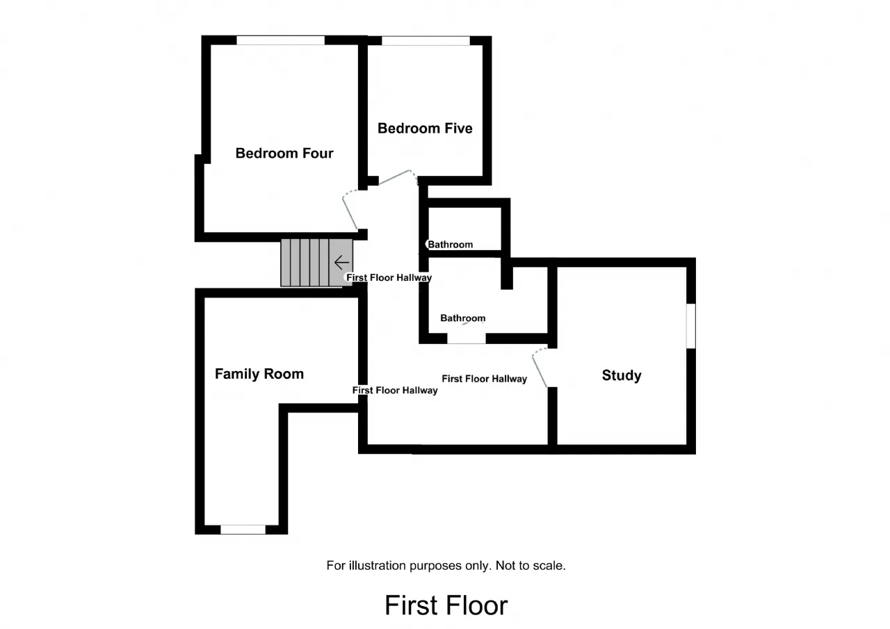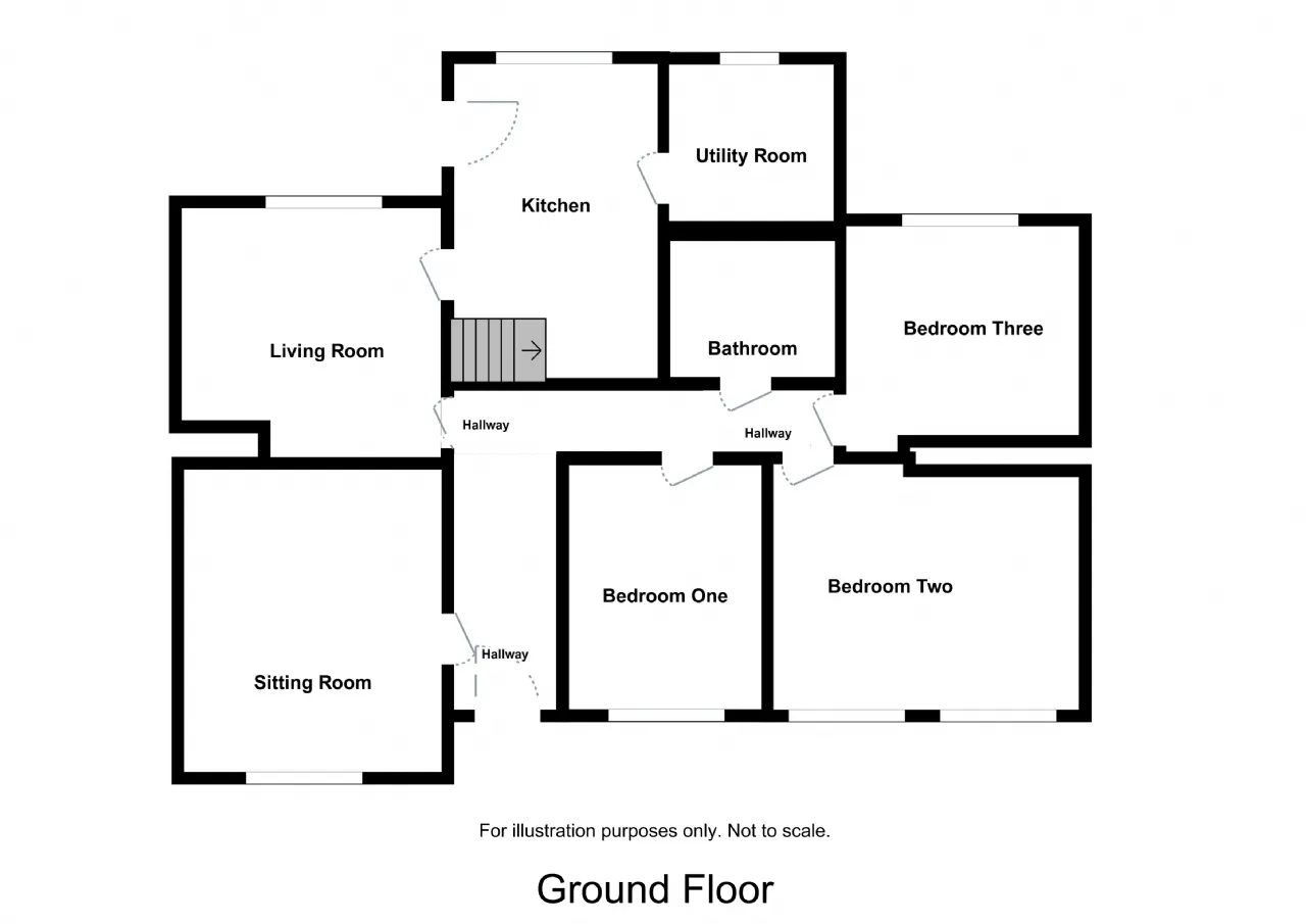 The property is especially suited for families. Inside, the accommodation is bright. The ground floor starts with an entrance hall that leads to two reception rooms, each featuring a fireplace, three bedrooms and family bathroom. The recently refitted kitchen is finished with splashback tiling and a tiled floor, offering rear access to the garden. A separate utility room provides additional storage. The upstairs floor includes two bedrooms, a bathroom, family room and study