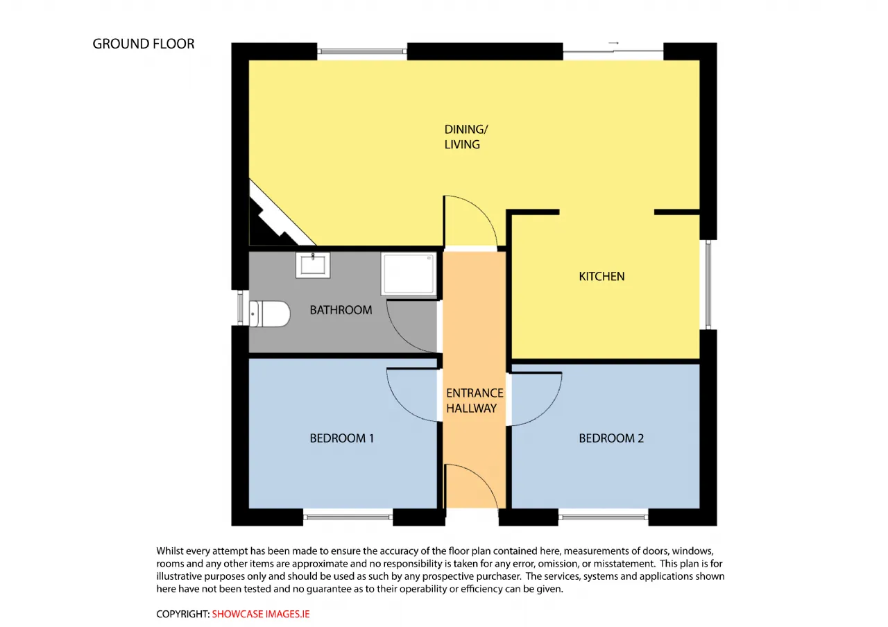 The accommodation extends to the total floor area of 57.9sqm approx. and comprises of entrance hallway, dining/living room, kitchen, two bedrooms and a family bathroom.
