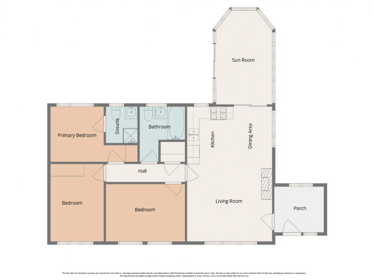 Accommodation includes front porch, open plan living area, large sunroom, 3 bedrooms (master ensuite) and family bathroom with plenty of room also for further expansion.....