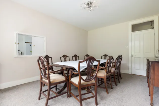 Dining Room, with deep window facing the Sugar Loaf; service hatch from kitchen, and door to