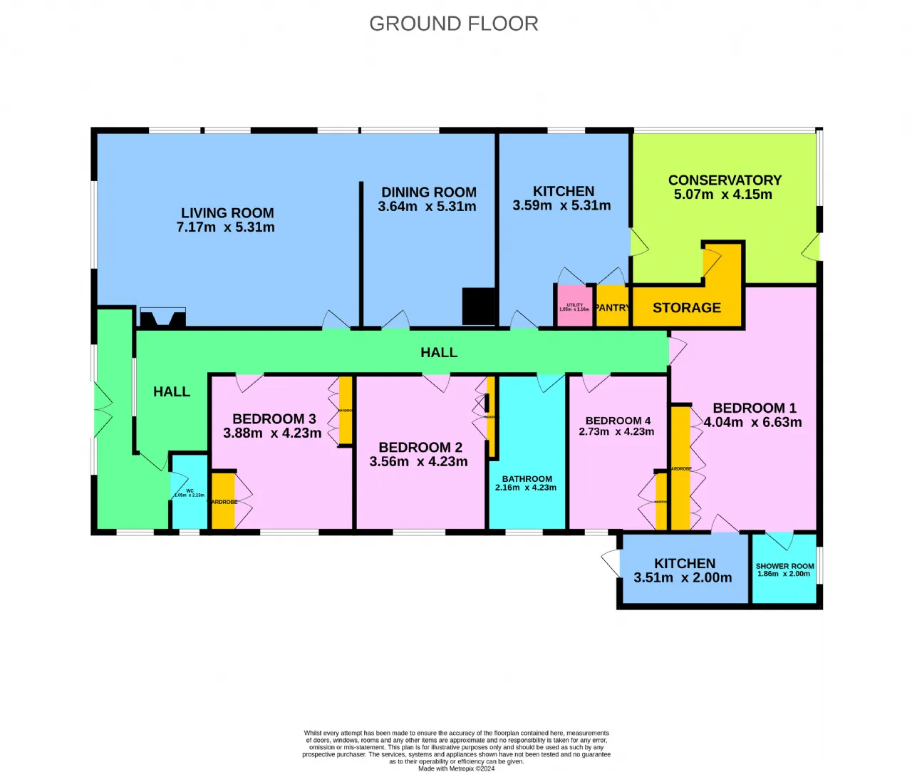 Garden Room, enjoying a dual aspect and direct access to the garden, Quarry tile floor. Walk-in store room.