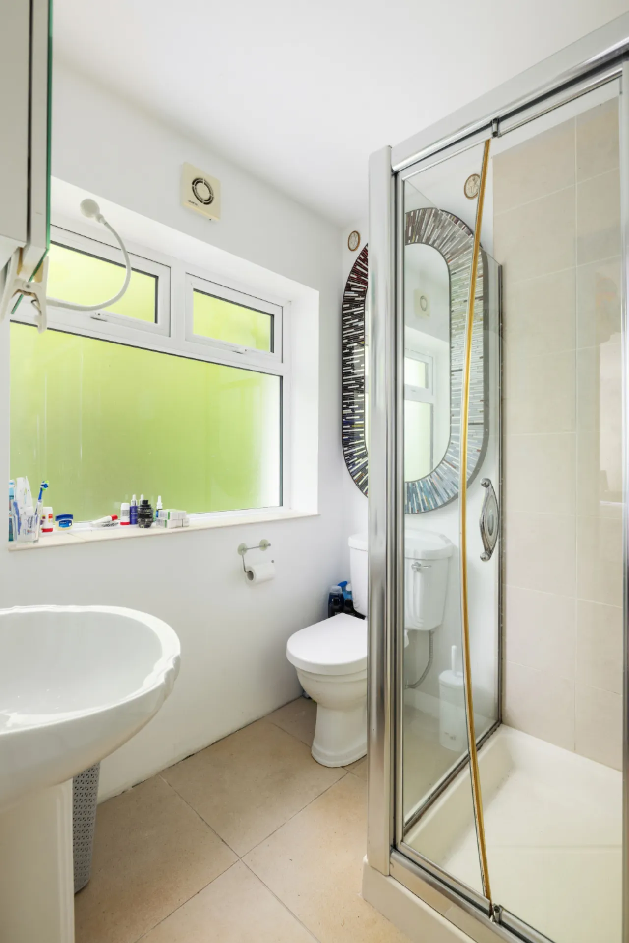 Reception Hall. Guest W.C and cloakroom off, plumbed for washing machine and space for clothes dryer; part-tiled walls.