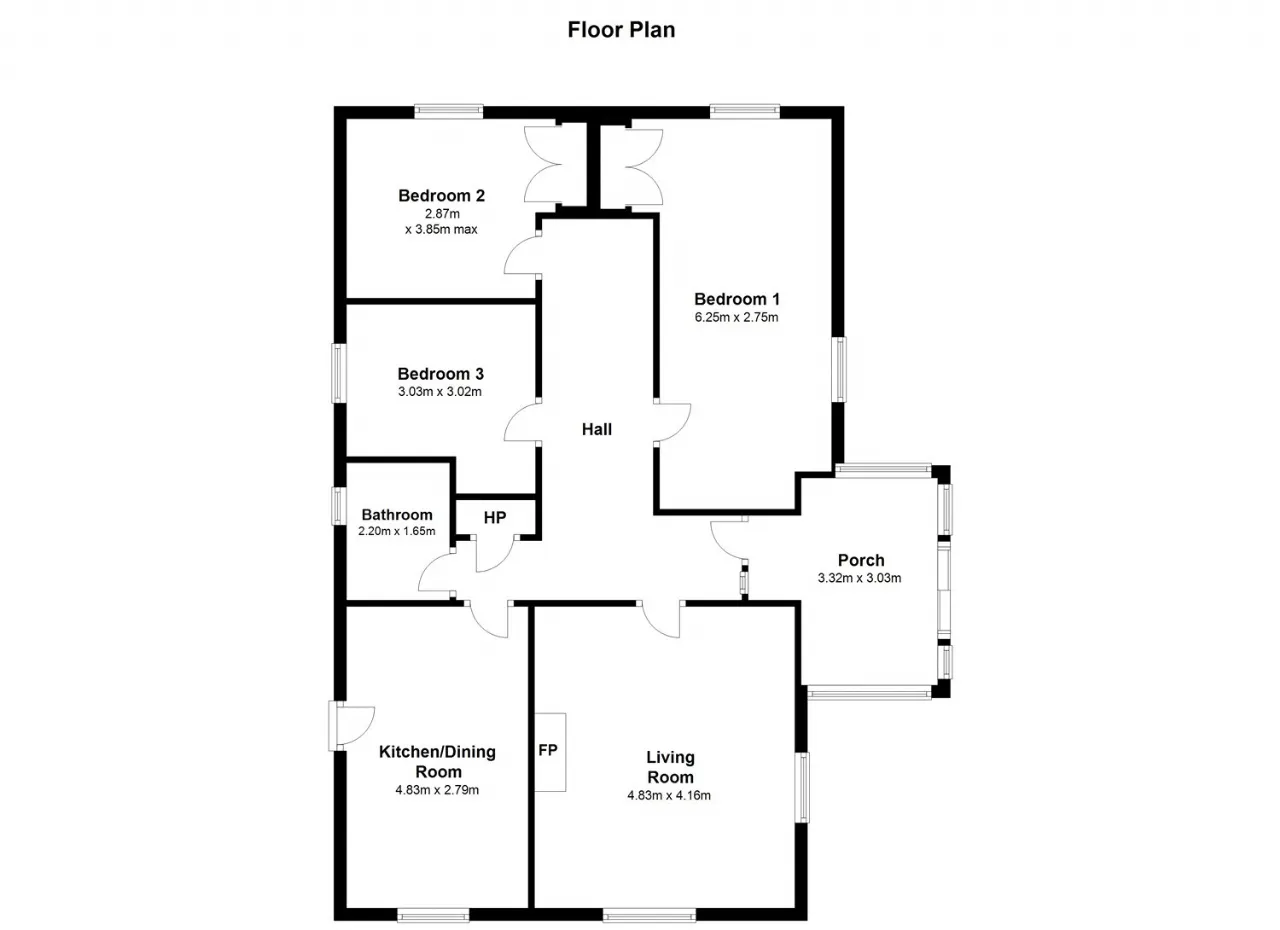 Living Room 4.83m x 4.16m Bright well proportioned living room with dual aspect windows, sea views and an open fireplace with red brick surround