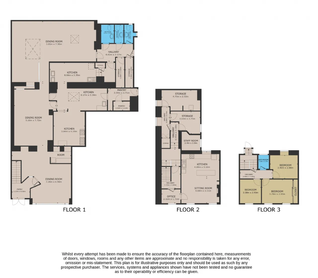 O'Connor's is a 3 storey, original style building, containing 260 sq. m. / 2,800 sq. ft. approximately of ground floor space and laid out with an 85 seat restaurant that is designed to be adaptable, kitchen and ancillary facilities, preparation kitchen, cold rooms, dry goods storage area and toilets on ground floor.