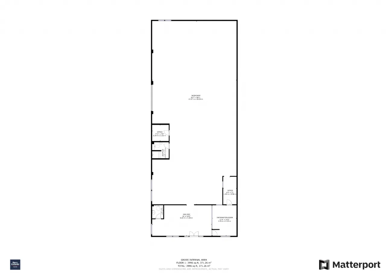 Most recently utilised as a garage the unit is laid out as a reception area, guest wc, office, store room, open plan workshop with shower unit and canteen. Roller shutter door to the side of the workshop.