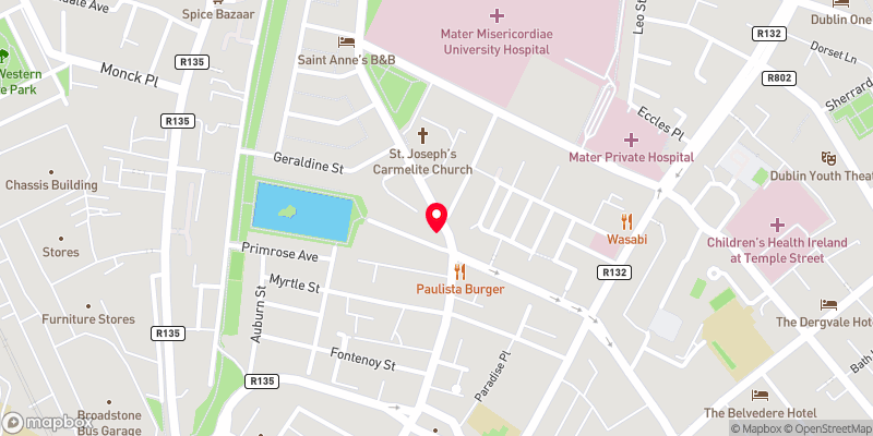 The subject property is situated at the corner of Berkeley Street in Phibsborough, Dublin 7. Phibsborough is a thriving city centre location, positioned approximately 1 km northwest of Dublin city centre. The immediate area comprises a mix of commercial and residential premises, with Temple Street, Mater Hospital, and Technological University Dublin located nearby.