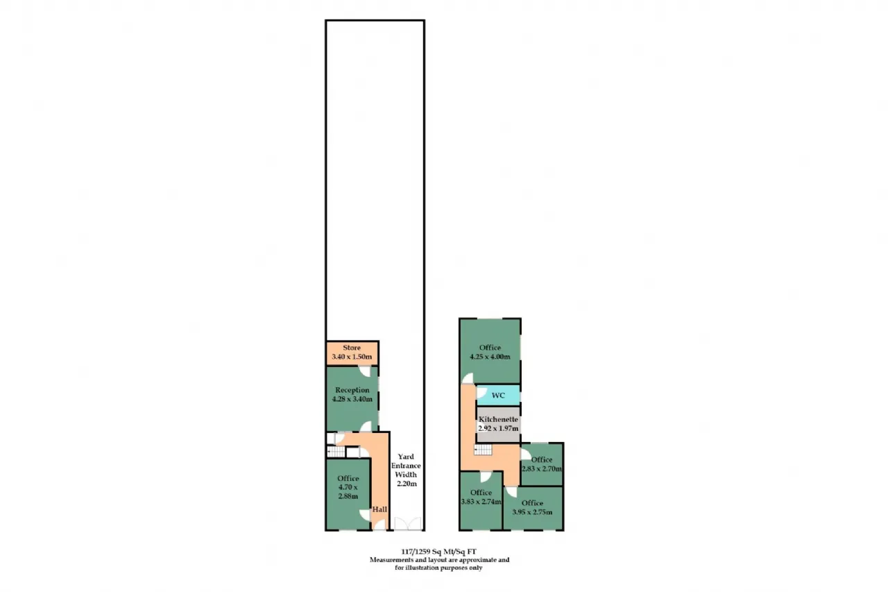 Inside, the ground floor offers two well-appointed offices and a convenient storeroom. Upstairs, you’ll find four additional offices, along with a kitchen and toilet facilities—perfect for a variety of business needs.