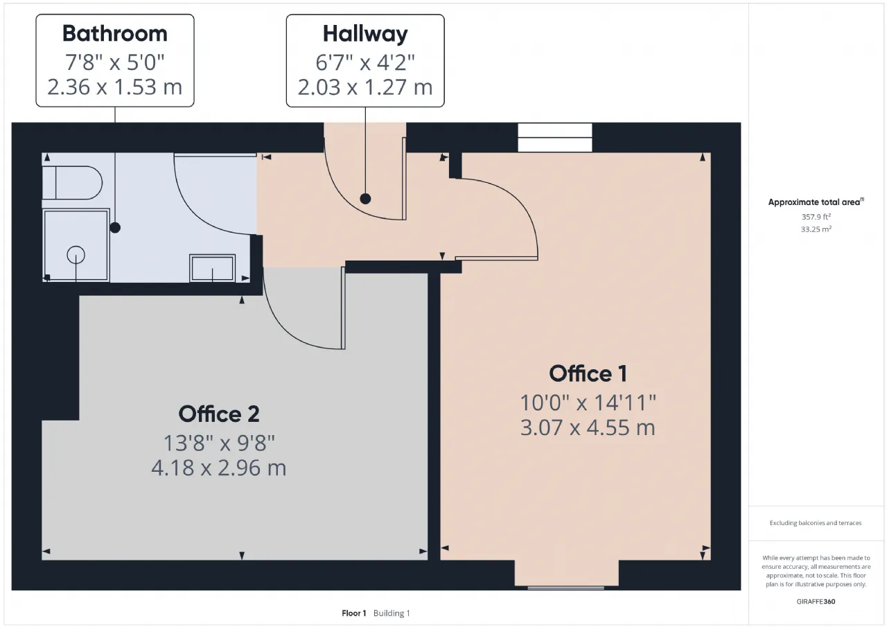Office 1 3.07m x 4.55m Spacious office, ideal for additional storage