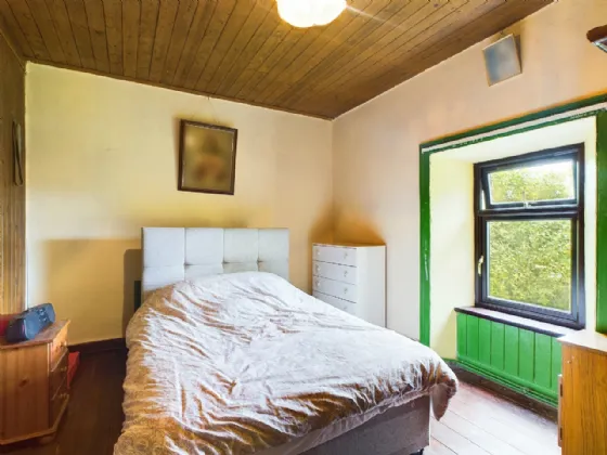 The residence is a 4 bedroom, high ceiling, traditional two storey farmhouse. The property is occupied and has been well maintained but is in need of decorative and energy efficiency modernisation. It provides an excellent elevated private setting for redevelopment and extension. Accommodation on the ground floor includes a kitchen/ dining room, living room and bathroom. The first floor currently includes 4 bedrooms. PVC double glazed windows. Floor area 103sqm BER G.
