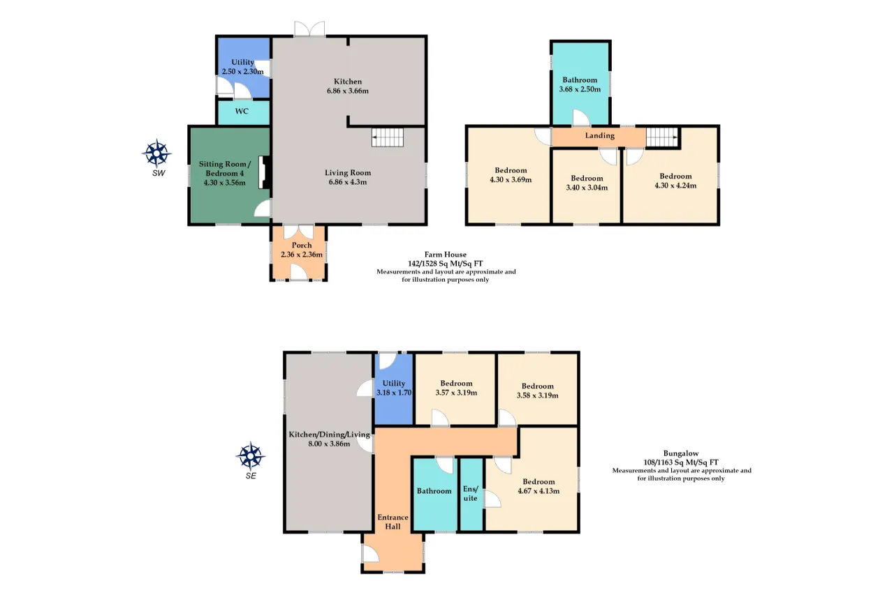 Upstairs, you will find three bright and spacious bedrooms, each filled with natural light and views of the surrounding farm. The bathroom is beautifully designed, featuring classic panelling that adds character and charm. It is equipped with a WC, a stylish vanity unit, a shower, and a bath.
