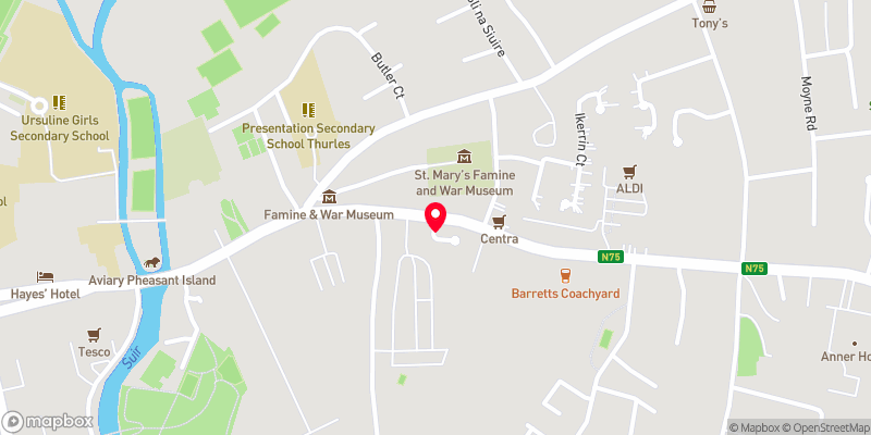 Thurles (Irish: Durlas) is a town in County Tipperary, surrounded by the Silvermine Mountains (to the northwest) and the Slieveardagh Hills (to the southeast). The town itself is built on a crossing of the River Suir. The M8 connects Thurles to Cork and Dublin via the N75 and N62 roads. The R498 links Thurles to Nenagh. The still functioning Thurles railway station opened 1848.