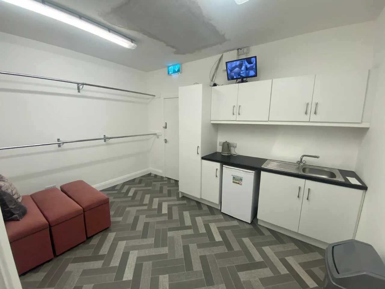 At ground floor level is the main shop floor with display units, cash desk, changing cublicles, toilet facilites and a kitchen.