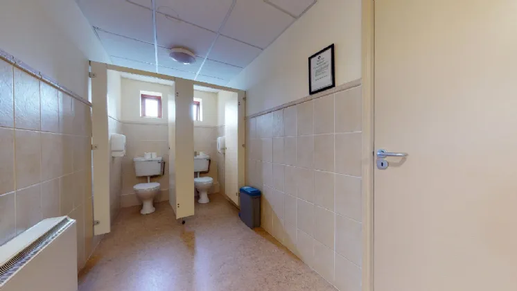 Ladies Toilets 4.93m x 2.64m with two wash hand basins, two hand dryer's and two wc cubicles.