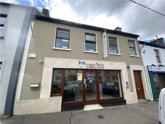 Constructed in 2004 this modern building is excellently located right in the heart of Charlestown, on the intersection of the N5 / N17 and within 5 minutes of Ireland West Airport Knock. The building is also serviced by a rear access road and a substantial private car park complete with automated access gates.