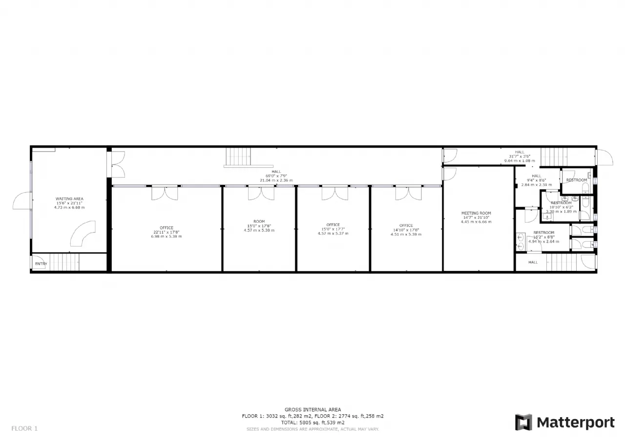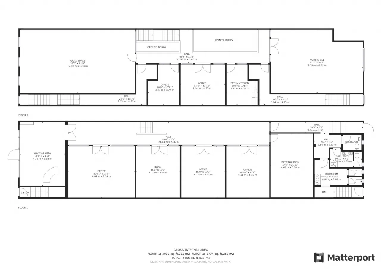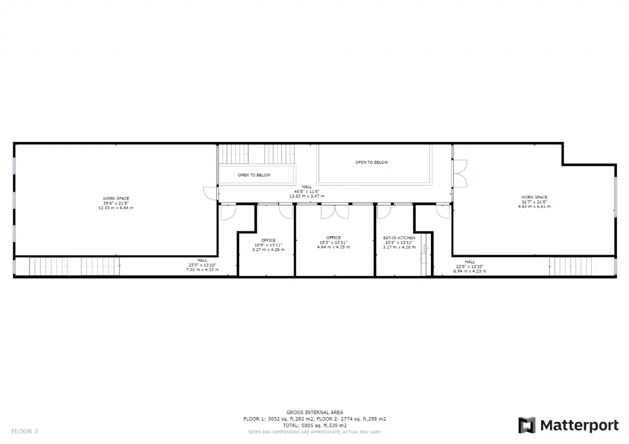 Comprising approximately 560 square metres (6,027 square feet) over two floors this substantial office building is laid out in a number of suites of varying sizes with communal reception, kitchen and restroom facilities.