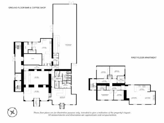 The property has a floor area of approximately 728sq m/ 7,836 sq ft and is presented in good condition throughout. Ground floor accommodation consists of bar & lounge/restaurant, toilet facilities which include baby change and accessible toilet, a fully equipped catering kitchen, keg room, multiple store rooms and a large function room with fully equipped bar and separate entrance. There is also an adjoining fully equipped coffee shop with a separate entrance. The coffee shop and front bar have stunning south facing views of the sea and Cliffs.
