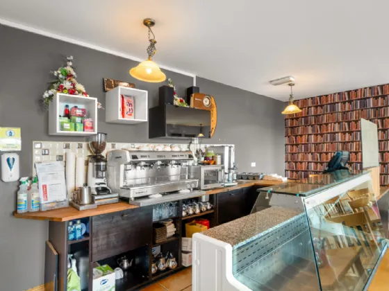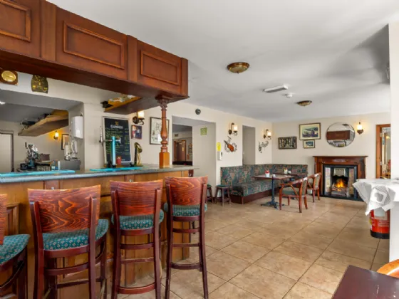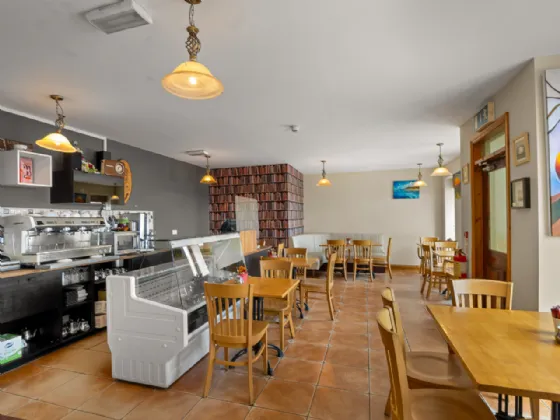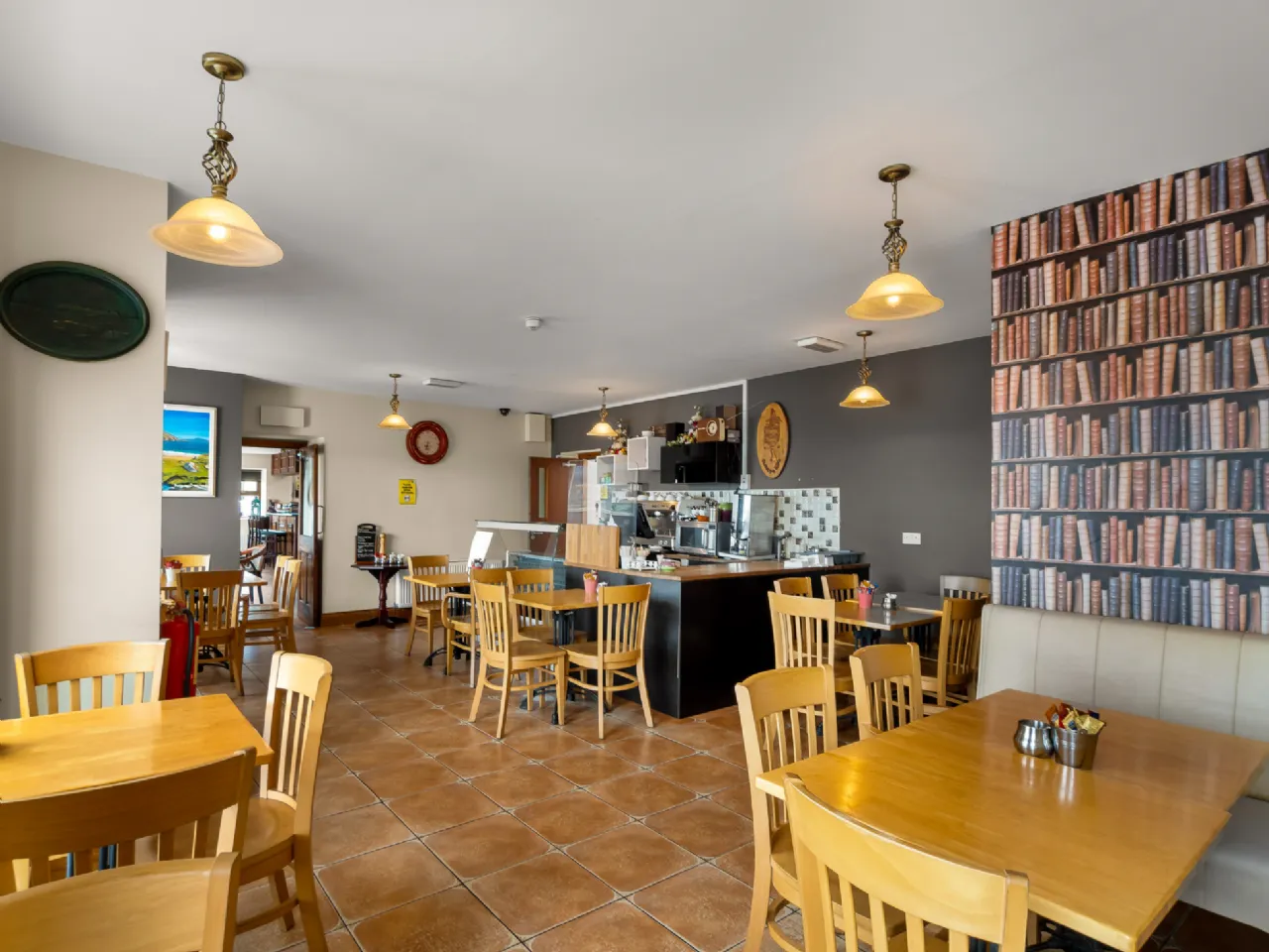 Cafe 8.8m x 5.2m Seaparate entrance to Bar/Restaurant, tiled floor, counter with cold display unit, burco boiler