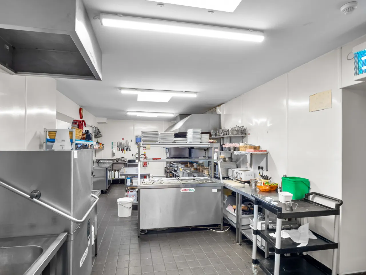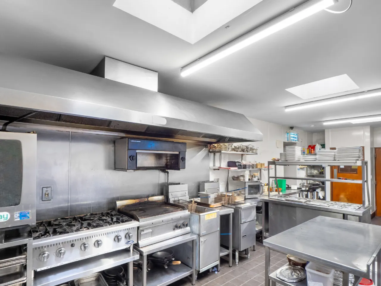 Kitchen 6.47m x 8.86m Fully equipped stainlees steel Catering kitchen, gas burner, grill, pass through dishwasher, freezers, fridges, prep areas