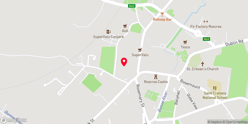 Roscrae lies at the crossroads of the M7 motorway between Dublin and Limerick and the N62 between Athlone and Horse and Jockey. It is well connected by bus routes. Route 12 connects Dublin and Limerick and connections are available hourly. Roscrea railway station is on the Limerick–Ballybrophy railway line. At Ballybrophy it joins the main Cork-Dublin line.