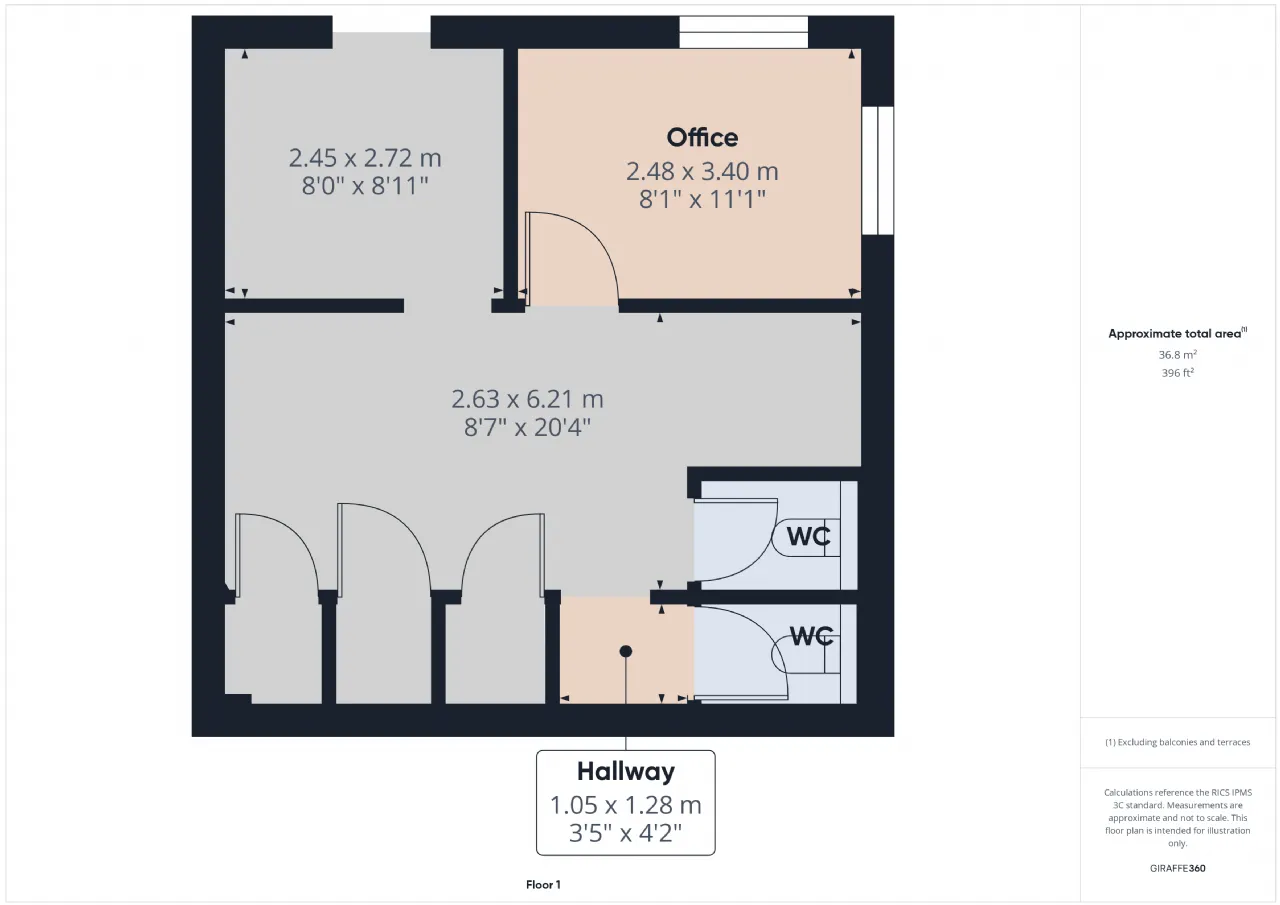 Upstairs there is an internal balcony space which leads to a hallway, office, two bathrooms and an office. Externally the unit benefits from three car parking spaces to the front and over roller shutter door to the front with a separate pedestrian door to the reception/office area. The clear internal height is 5.5m.