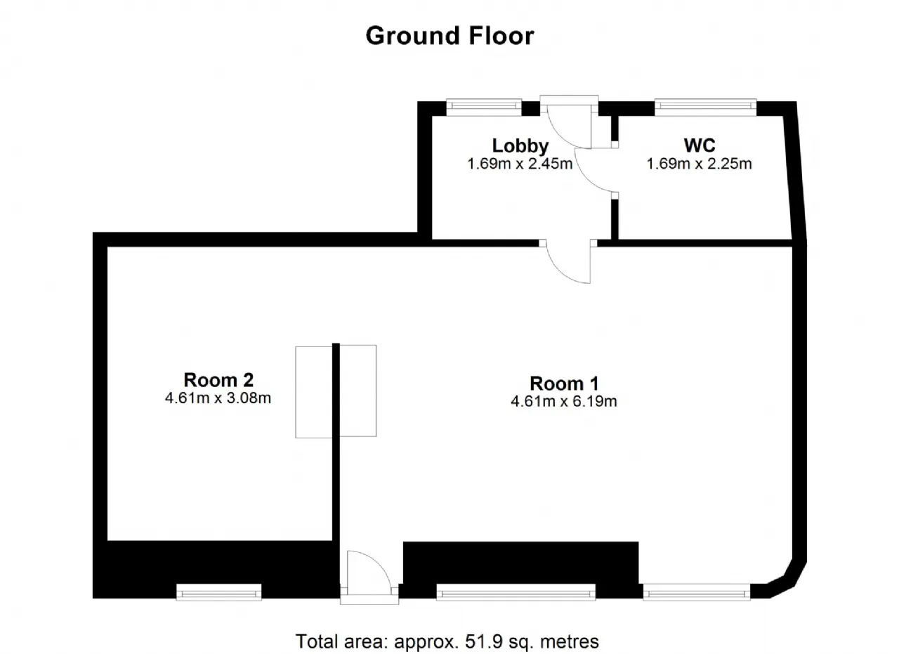 Room 2 4.61m x 3.08m Bright room with wooden floor.