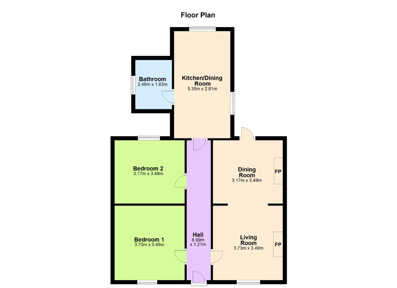 Bathroom 2.46m x 1.83m Large bright main bathroom with a bath, wash hand basin, WC and large privacy window to side of house.