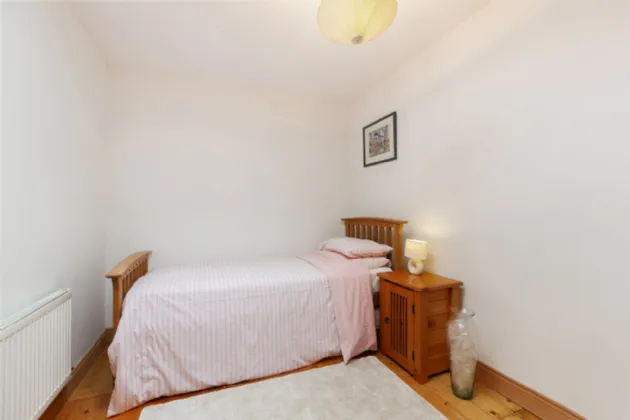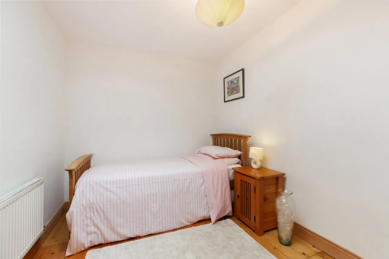 Bedroom 1 2.45m x 3.92m Double bedroom, timber wooden flooring, radiator, built in Irish oak wardrobes, window overlooking the courtyard and an attic hatch.