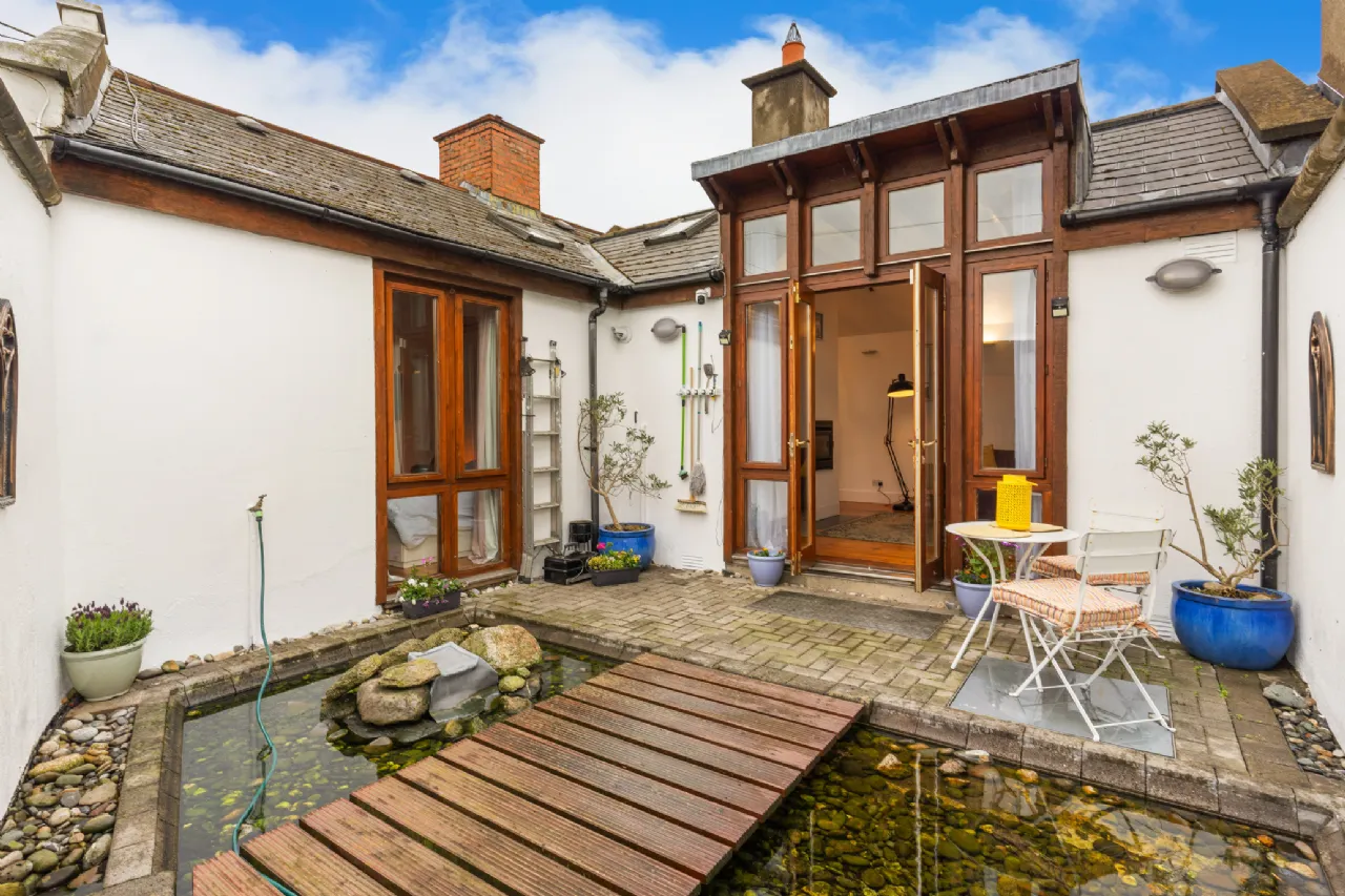 Garden South facing sun trap, pond, pedestrian side entrance, outdoor tap, patio area.