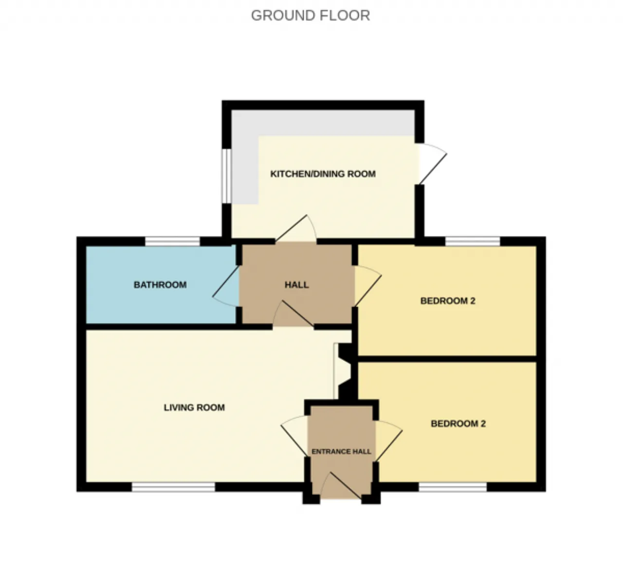 Accommodation briefly comprises entrance hall, spacious living area, kitchen/ dining area, two large bedrooms and family bathroom.
