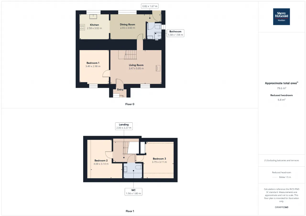 Bedroom 1 3.49m x 2.98m Front aspect window, wooden flooring, fitted storage
