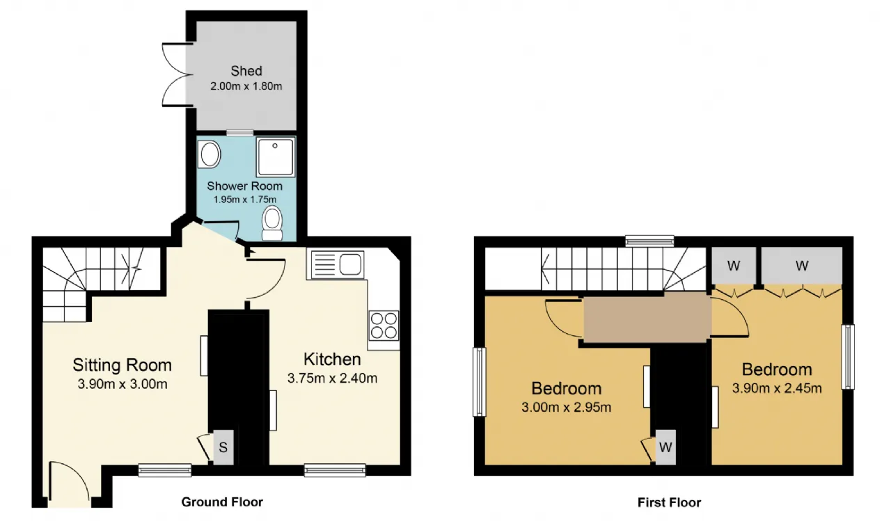 Upstairs there are two bedrooms both with small fireplaces also.
