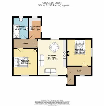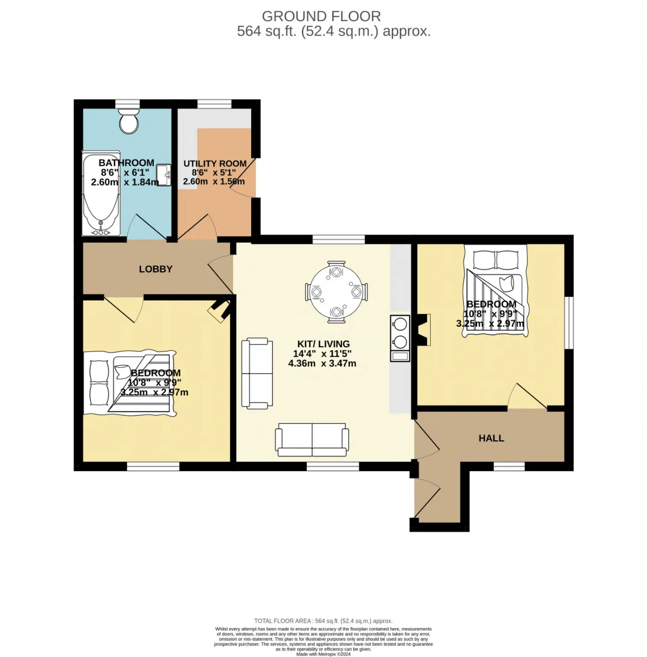 Accommodation comprises an entrance hall, living room, kitchen, utility, two no. bedrooms and bathroom.