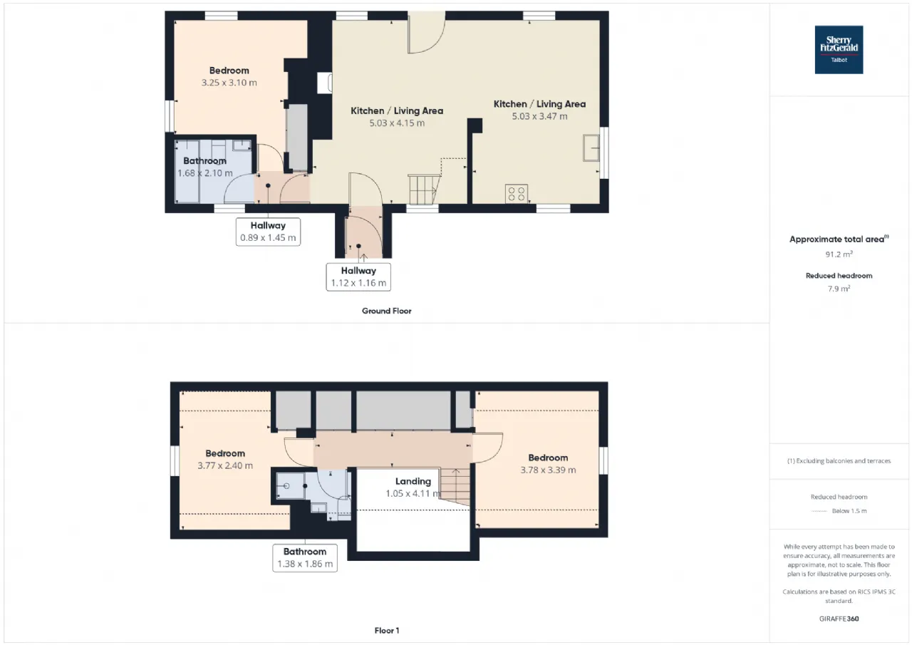 Bedroom Three 3.78m x 3.39m with built in wardrobes