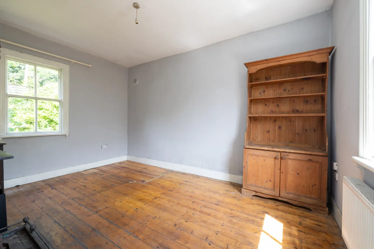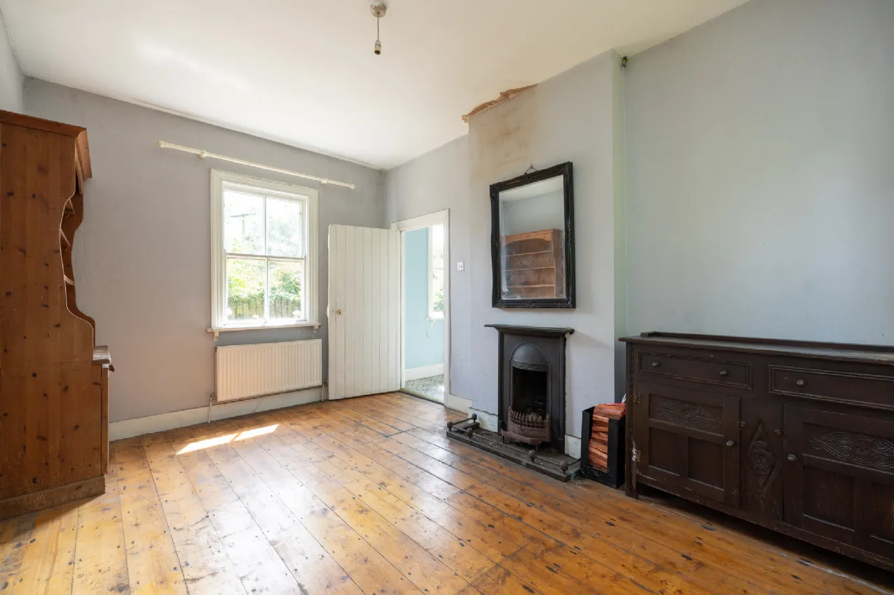 Sitting Room 4.69m x 3.80m solid wood flooring and feature open fireplace.