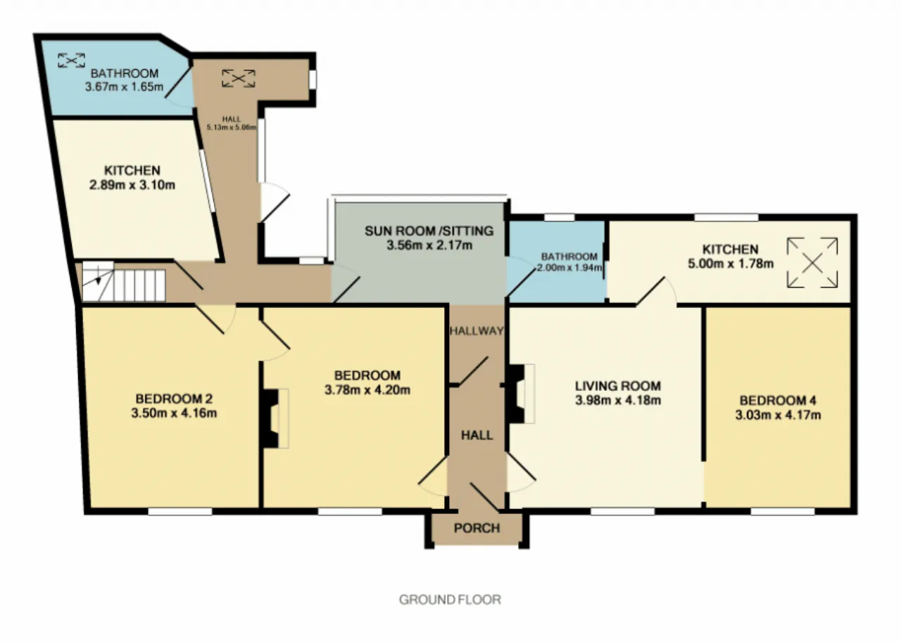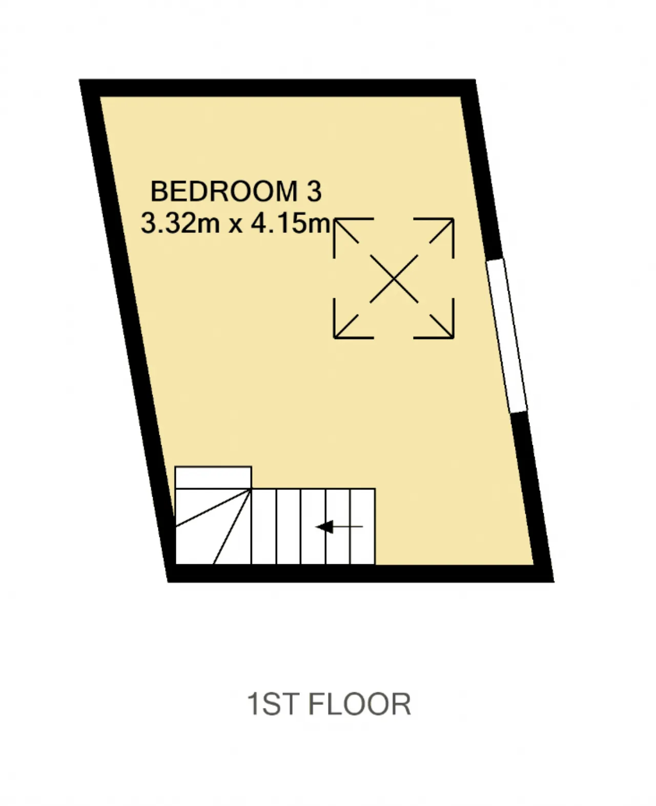 Bedroom 3 3.32m x 4.15m Double bedroom accessed via stairwell off kitchen, carpeted floors, windows overlooking rear courtyard.