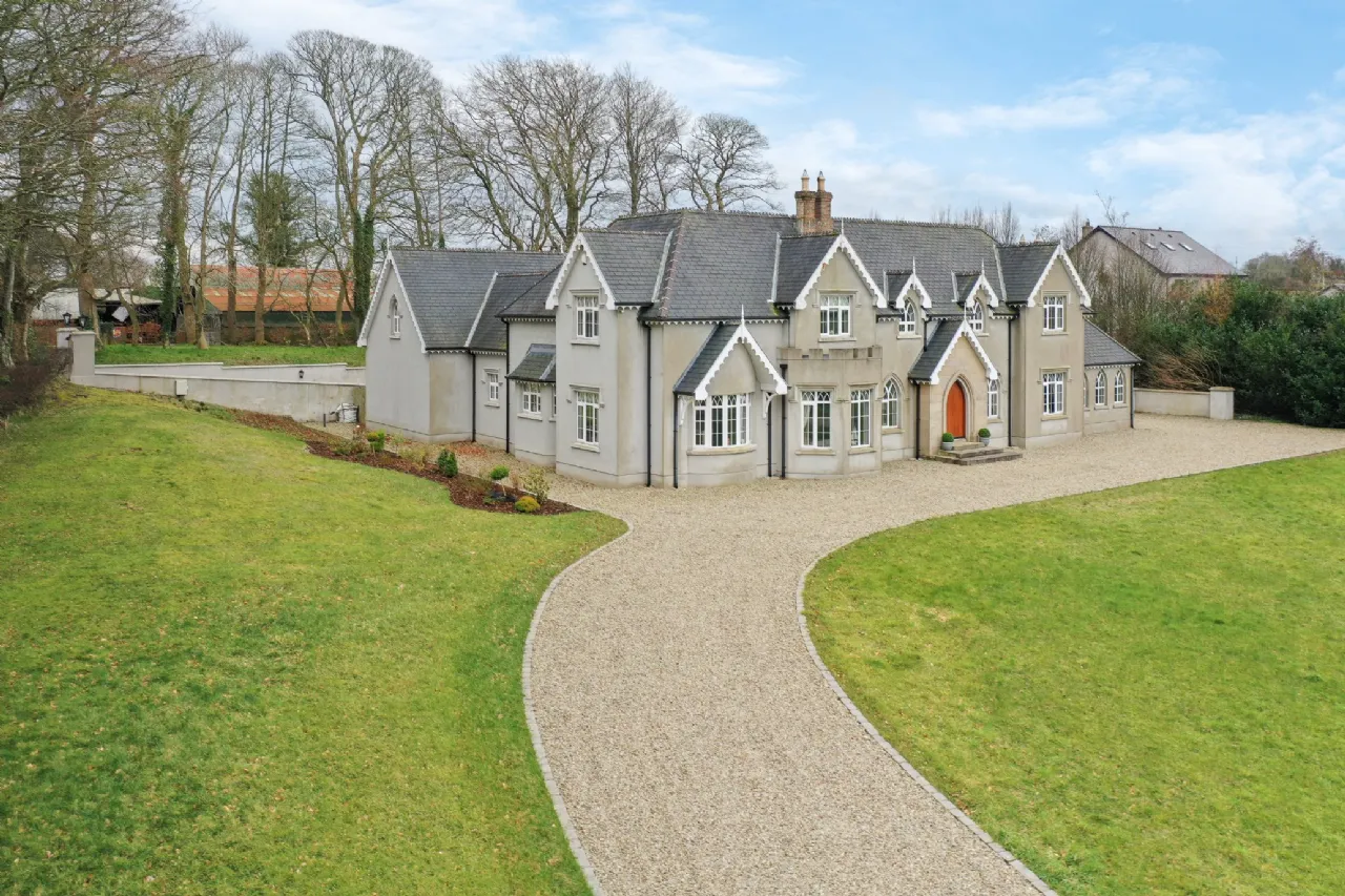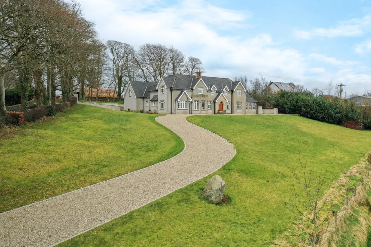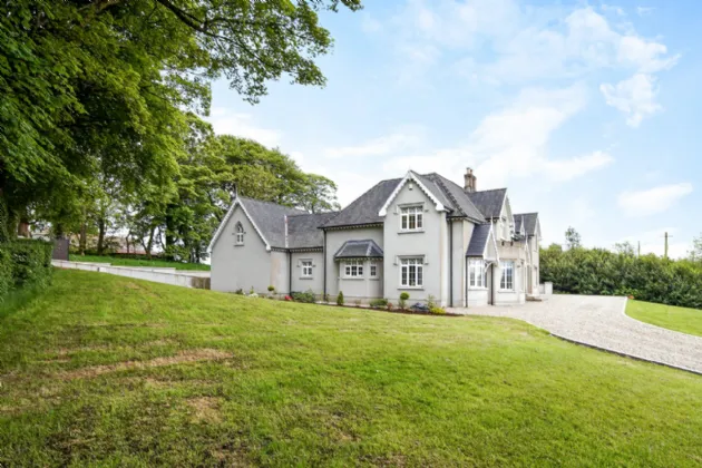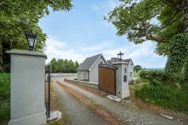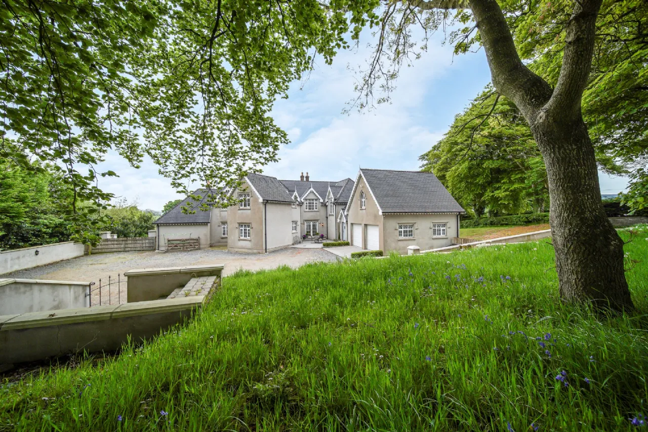 Carrickbrack is approached via a winding gravel driveway, elegantly framed by manicured lawns. Surrounded by towering trees and mature hedging, the property offers both seclusion and a stunning natural backdrop. The driveway meanders past the front of the house, leading to a generous open area ideal for ample parking, complete with a convenient secondary entrance. To the rear, a spacious patio, accessible from both the living room and back hall, beckons as an idyllic retreat to relax or hosting summer barbeques with family and friends.