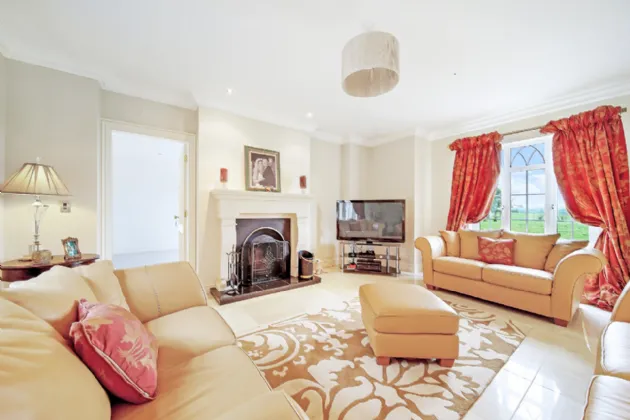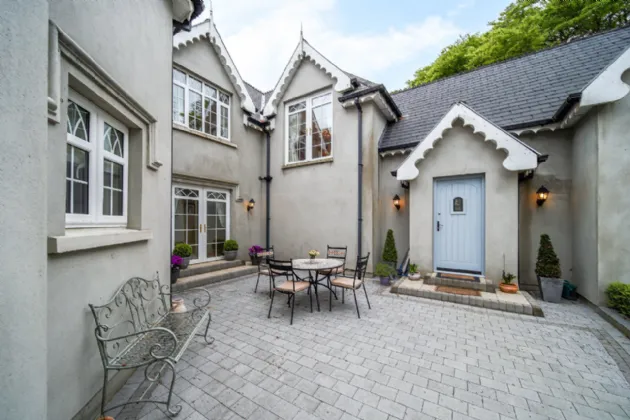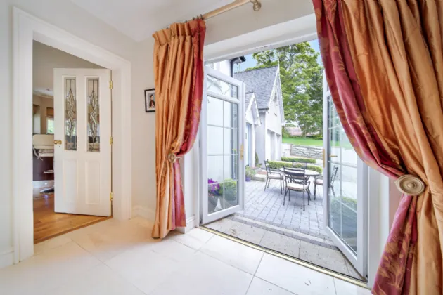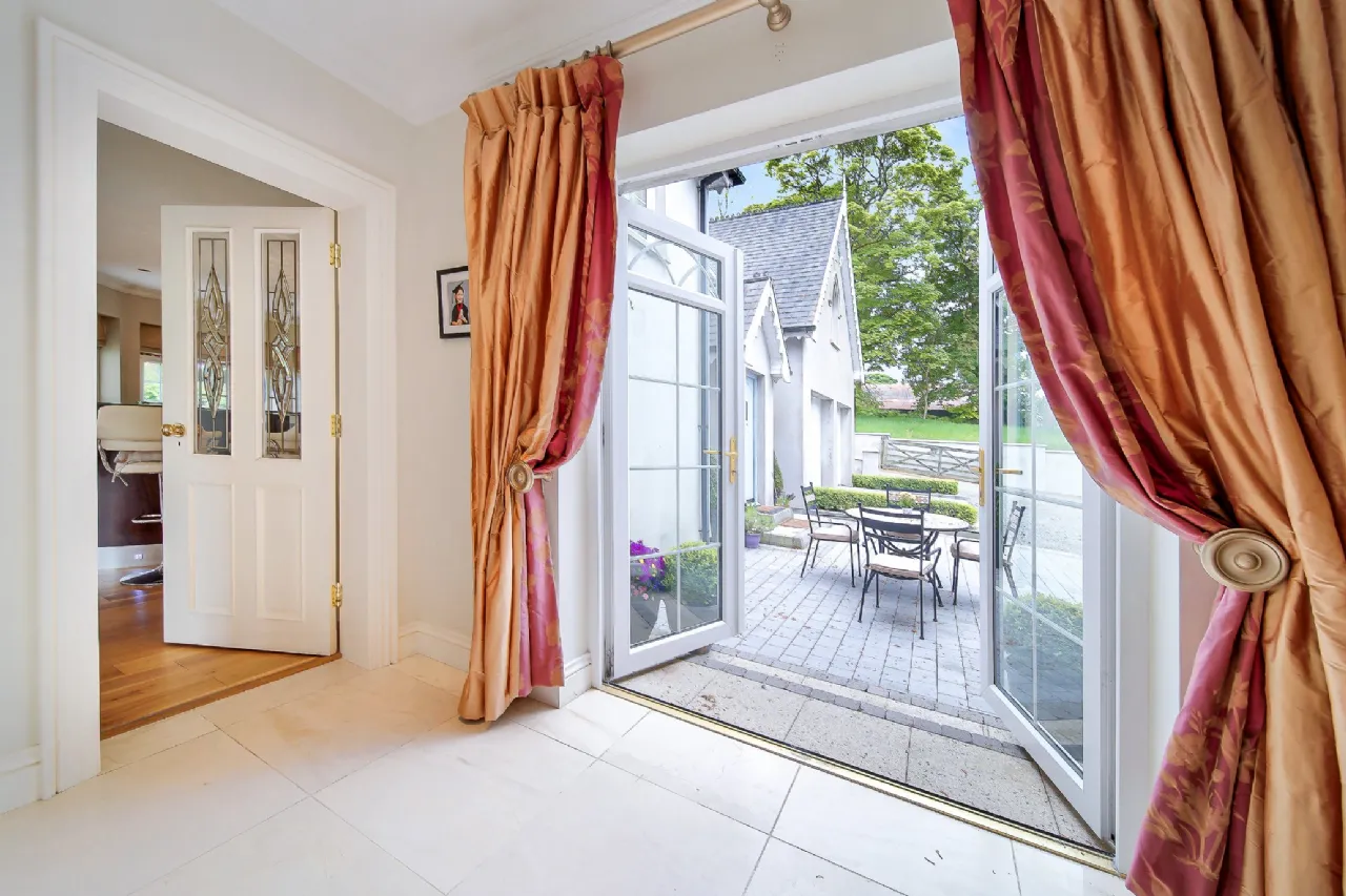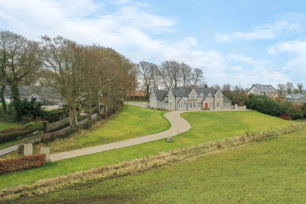Carrickbrack is approached via a winding gravel driveway, elegantly framed by manicured lawns. Surrounded by towering trees and mature hedging, the property offers both seclusion and a stunning natural backdrop. The driveway meanders past the front of the house, leading to a generous open area ideal for ample parking, complete with a convenient secondary entrance. To the rear, a spacious patio, accessible from both the living room and back hall, beckons as an idyllic retreat to relax or hosting summer barbeques with family and friends.