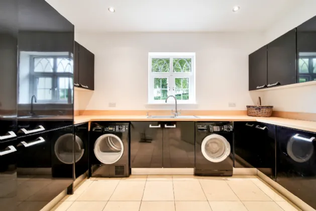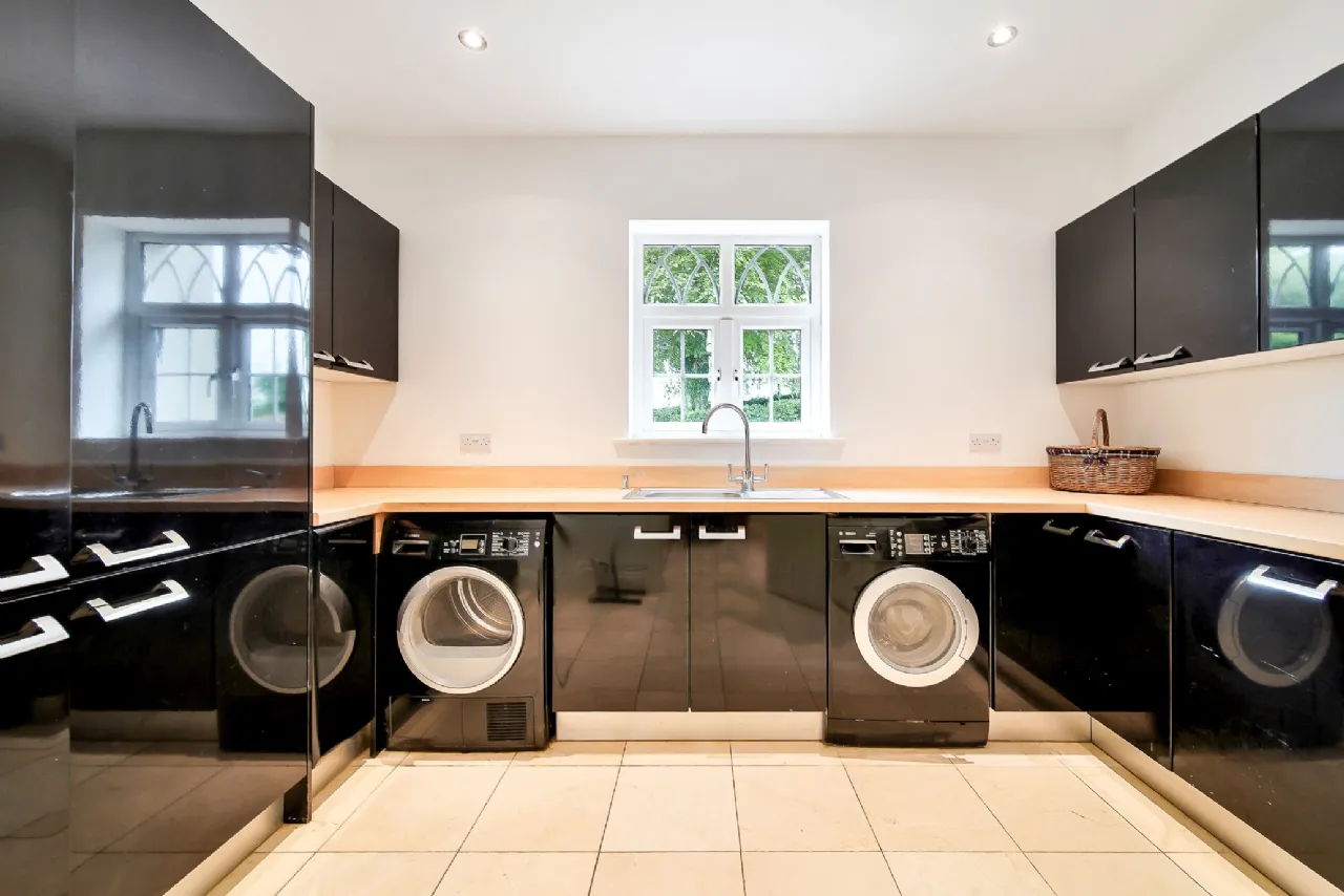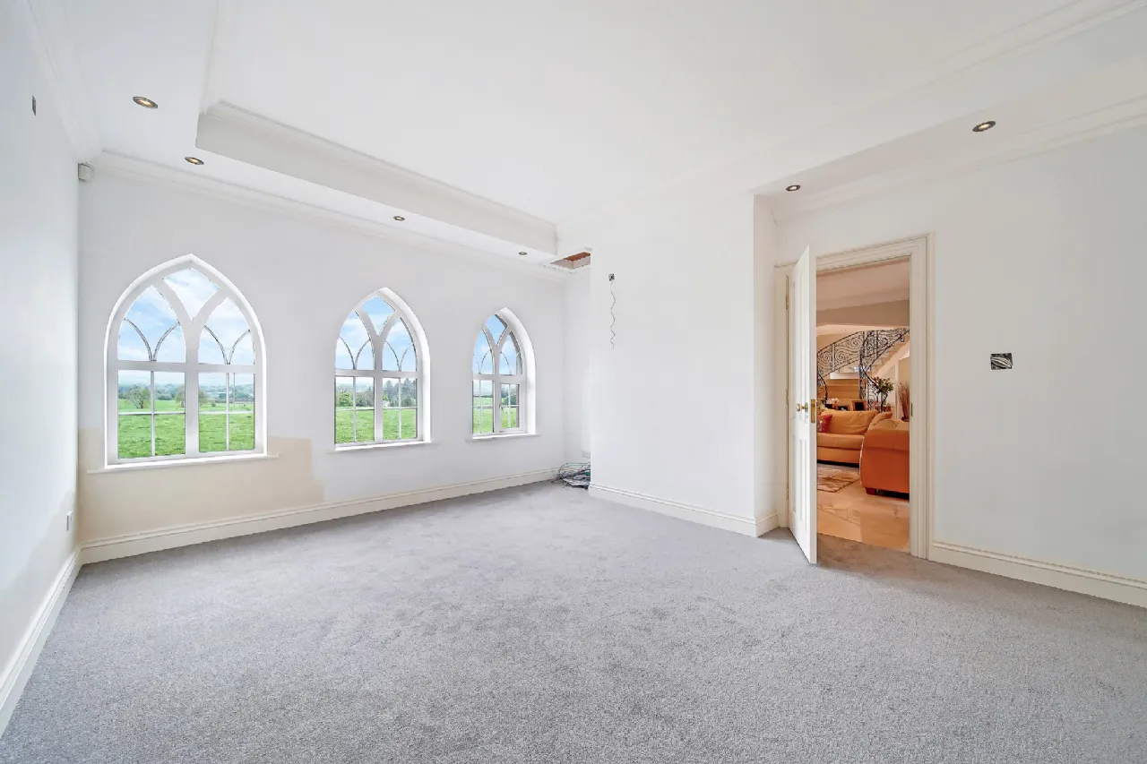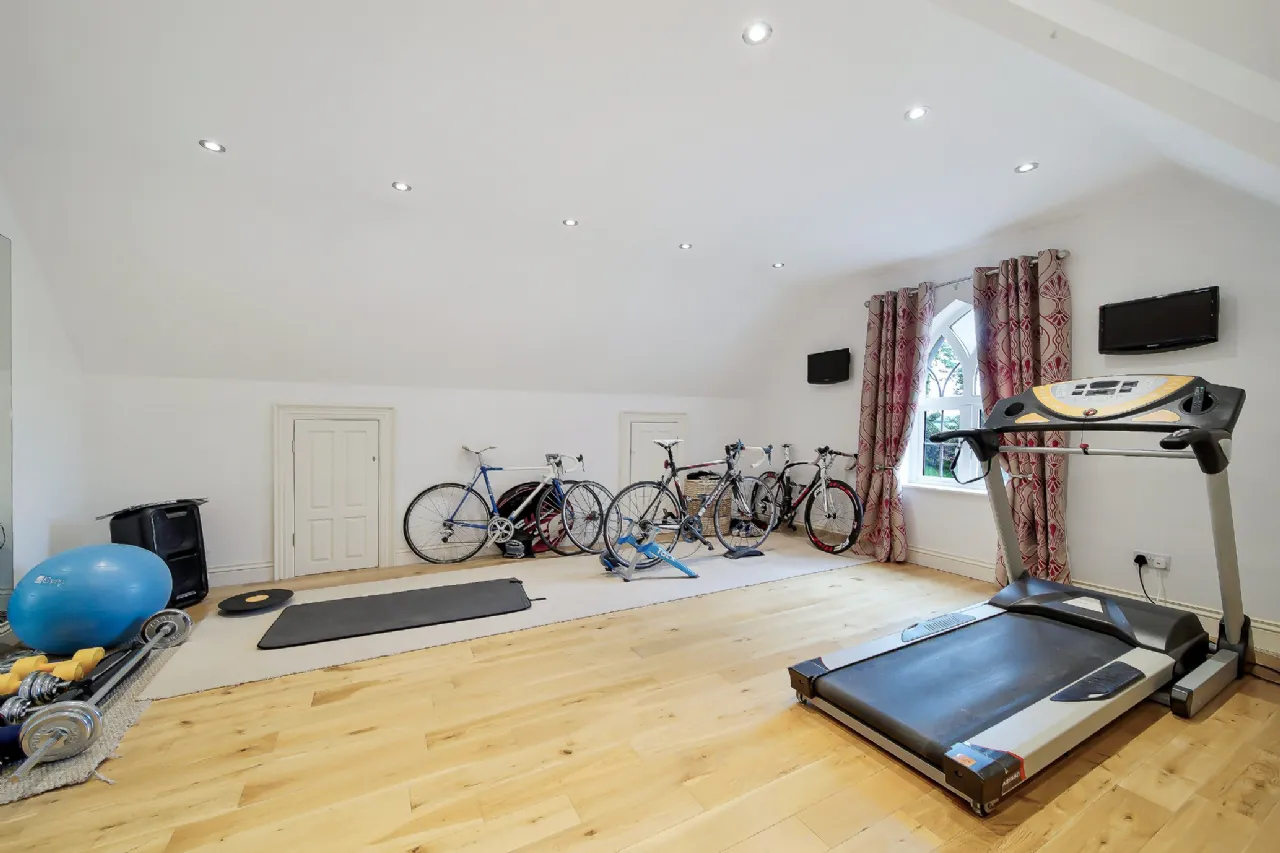 The ground floor is complete with a utility room, bathroom, spacious double bedroom, home office, and an additional room wired for a cinema but versatile enough to serve as a bedroom, reception room, or children's playroom.